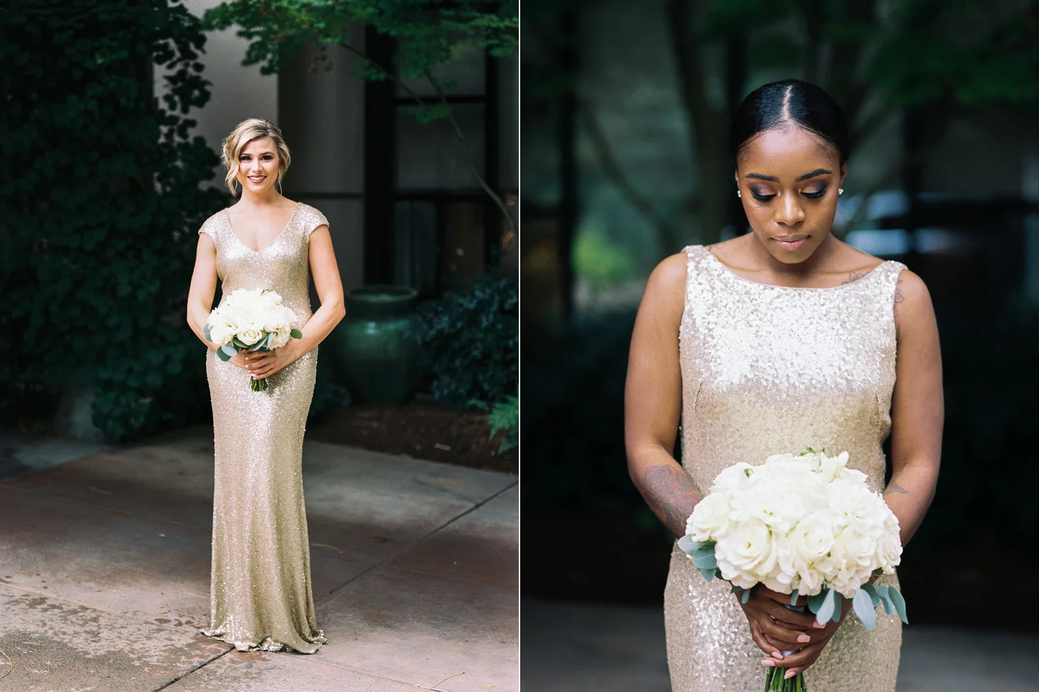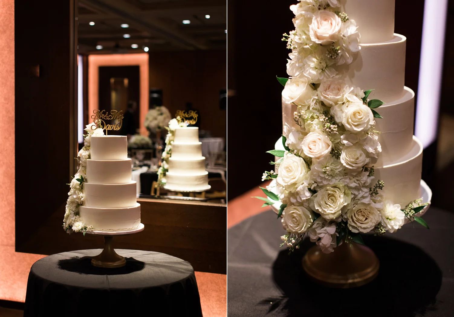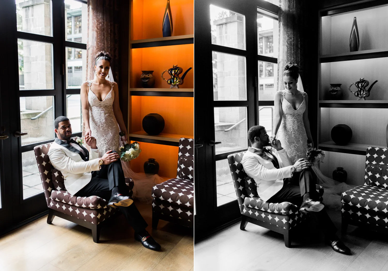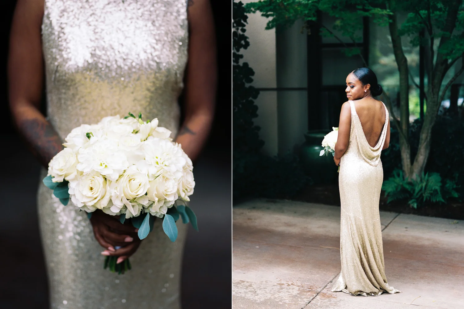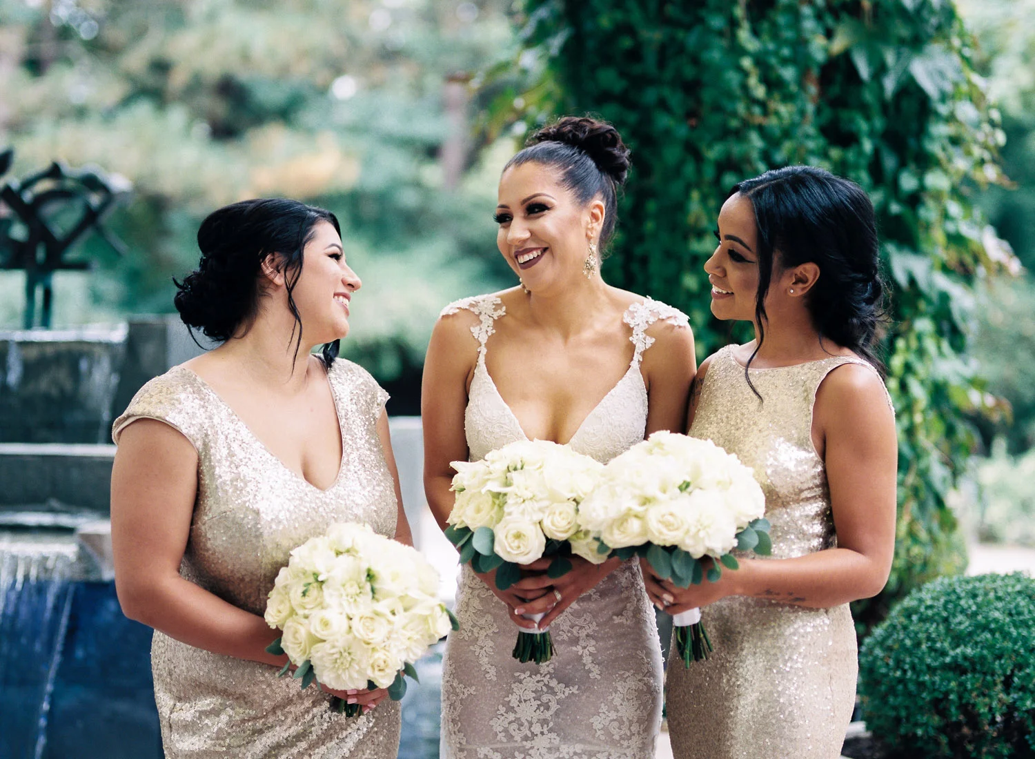 There are elegant weddings and then there are masterfully planned and completely stunning black tie affairs that are memorable beyond all belief. I am so happy to have been Taylor & Ja’Juan’s wedding photographer! When I first met with Taylor she told me of her vision to have a black and gold wedding, very refined, simple but very classic. Her vision came to life in stunning fashion at their wedding held at The Bellevue Club in Bellevue, WA. Taylor’s beautiful lace dress was a perfect compliment to her groom’s creme jacket, along with gold bow ties on all the groomsmen to match the bridesmaids’ dresses. Everything throughout the entire wedding day was so beautiful.