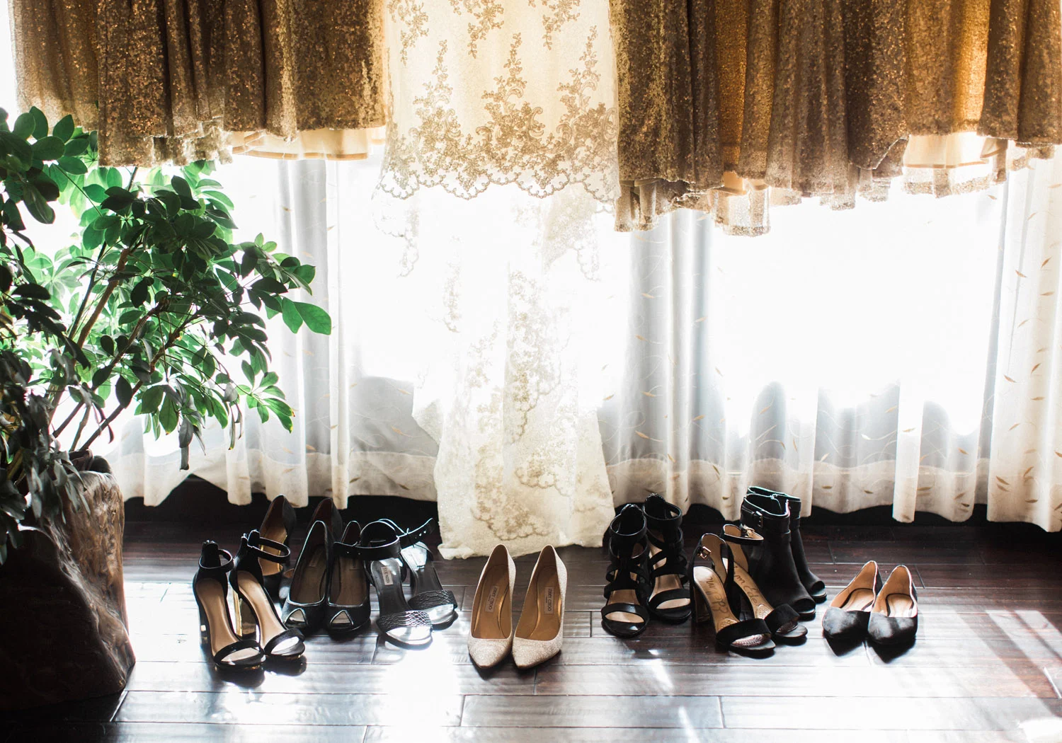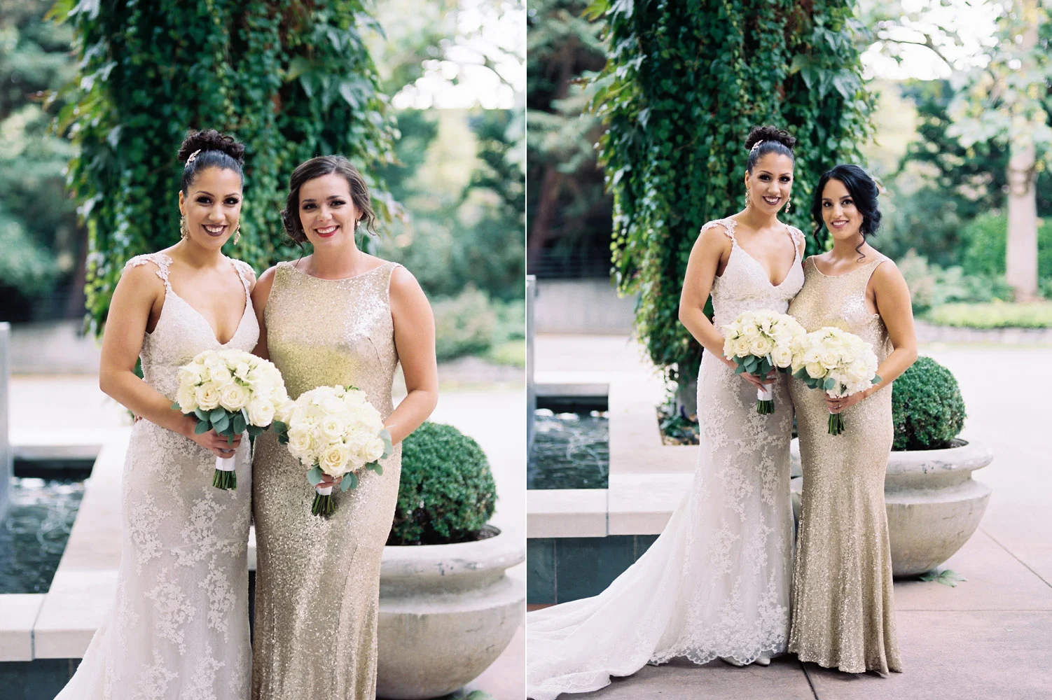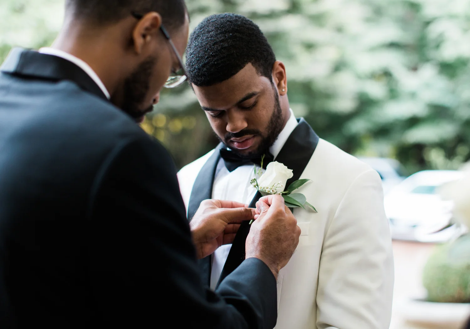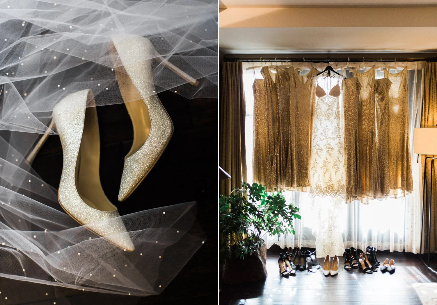 There are elegant weddings and then there are masterfully planned and completely stunning black tie affairs that are memorable beyond all belief. I am so happy to have been Taylor & Ja’Juan’s wedding photographer! When I first met with Taylor she told me of her vision to have a black and gold wedding, very refined, simple but very classic. Her vision came to life in stunning fashion at their wedding held at The Bellevue Club in Bellevue, WA. Taylor’s beautiful lace dress was a perfect compliment to her groom’s creme jacket, along with gold bow ties on all the groomsmen to match the bridesmaids’ dresses. Everything throughout the entire wedding day was so beautiful.