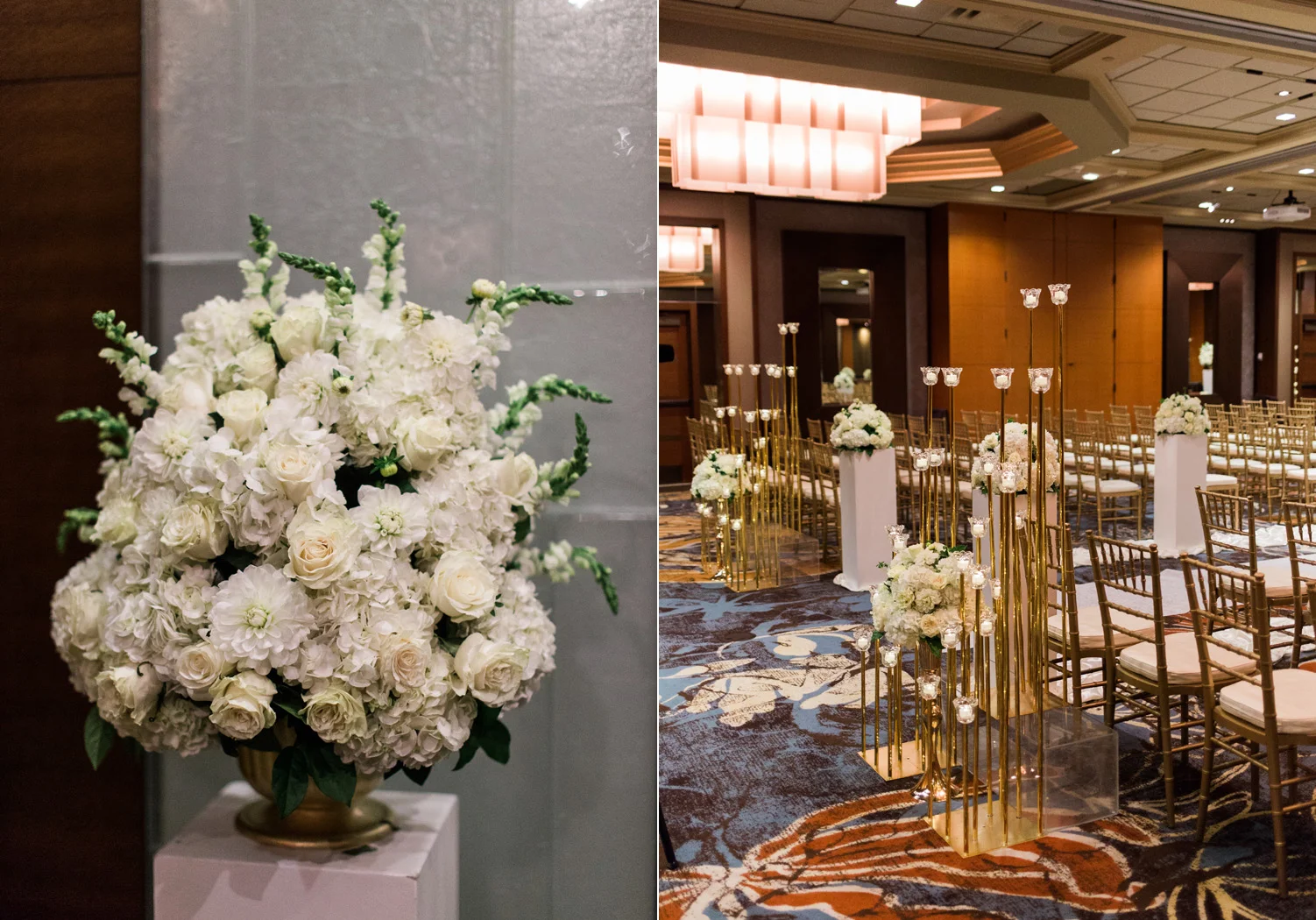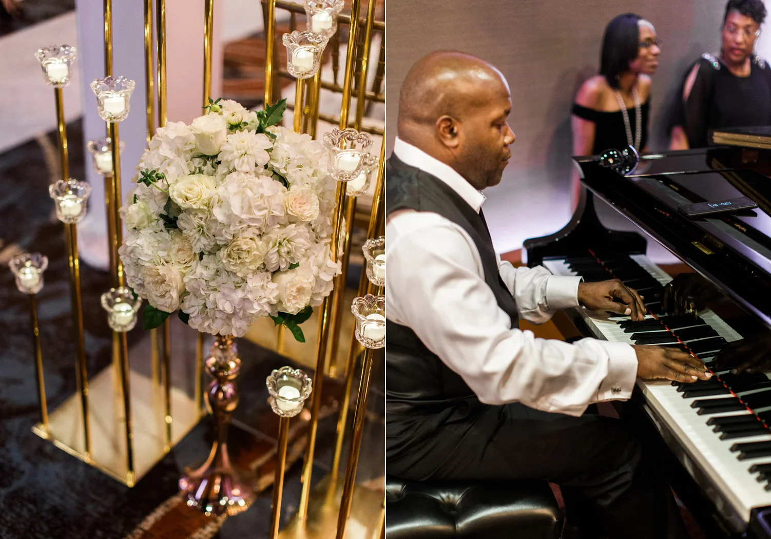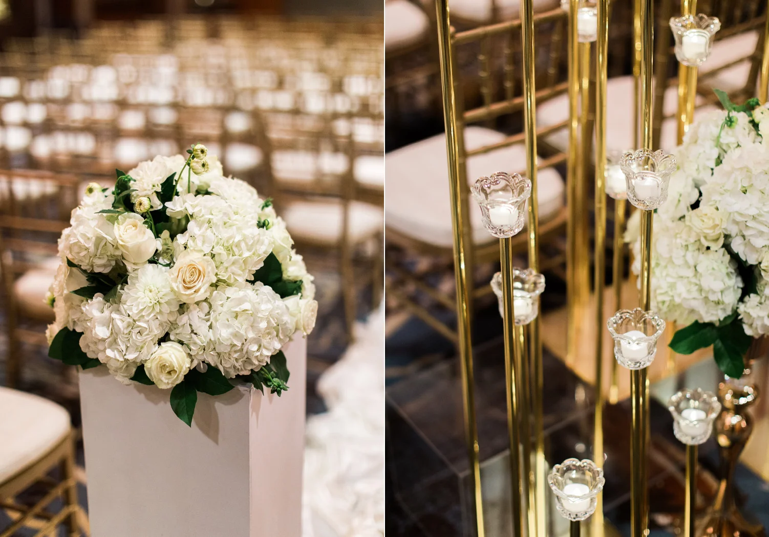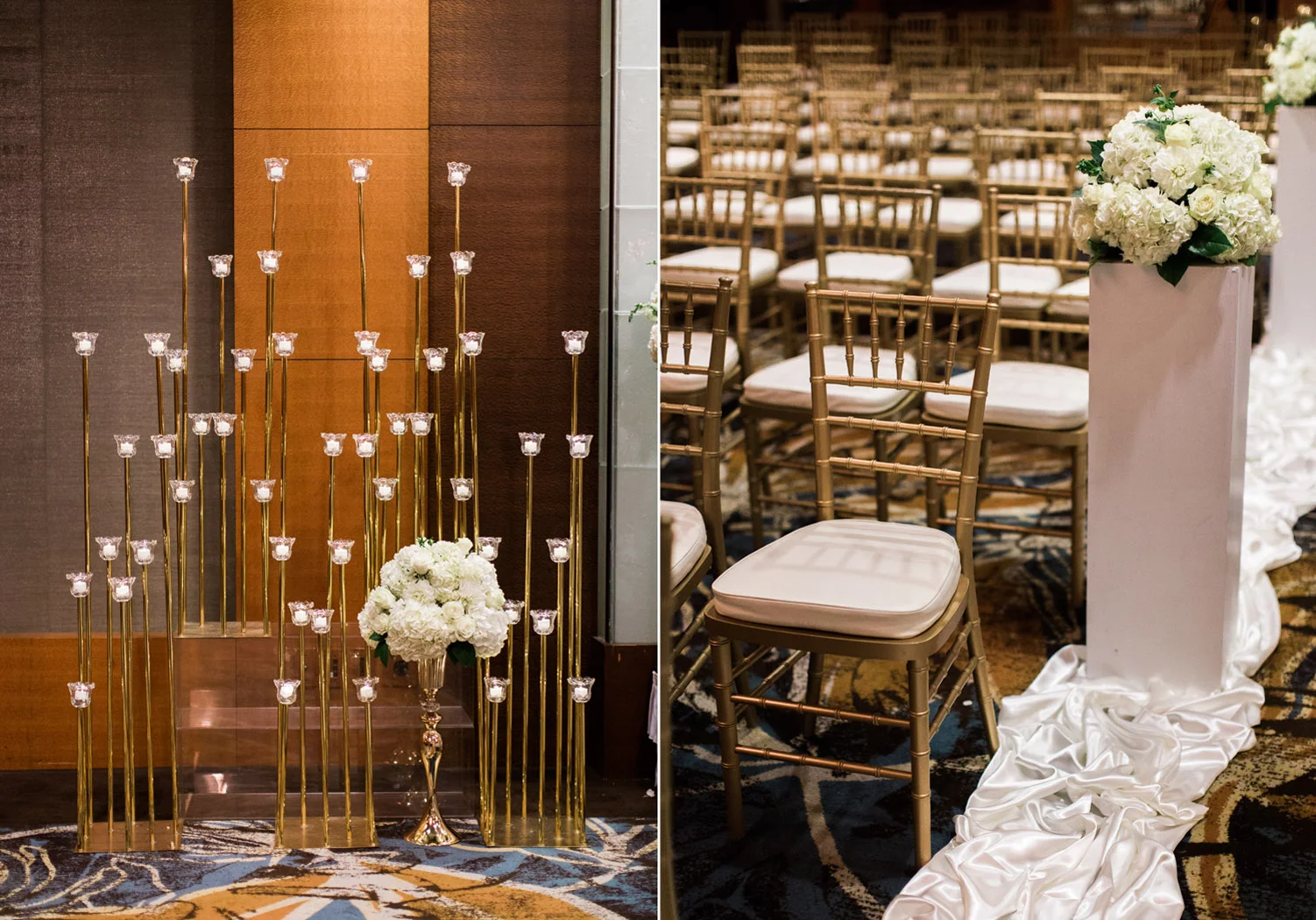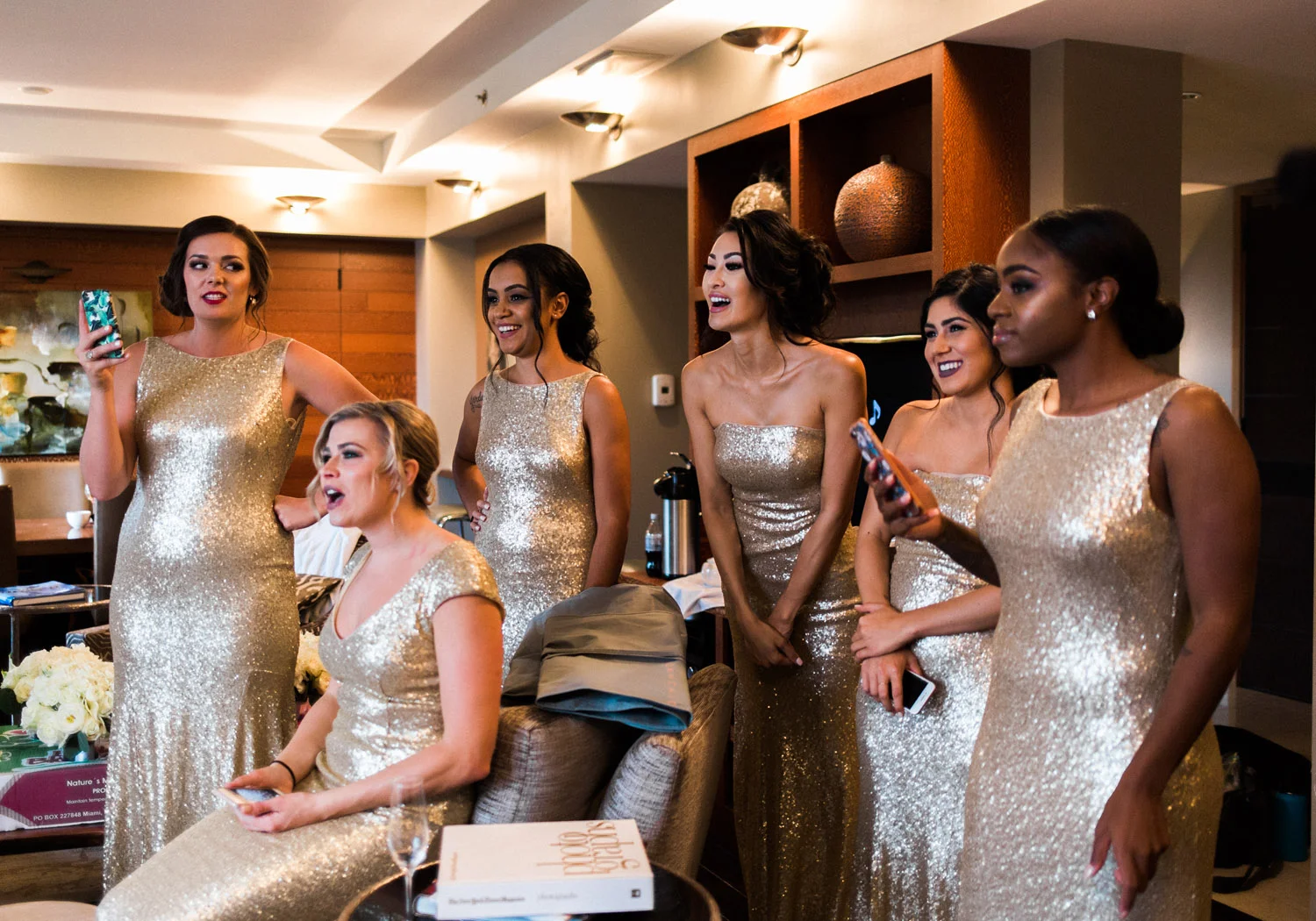 There are elegant weddings and then there are masterfully planned and completely stunning black tie affairs that are memorable beyond all belief. I am so happy to have been Taylor & Ja’Juan’s wedding photographer! When I first met with Taylor she told me of her vision to have a black and gold wedding, very refined, simple but very classic. Her vision came to life in stunning fashion at their wedding held at The Bellevue Club in Bellevue, WA. Taylor’s beautiful lace dress was a perfect compliment to her groom’s creme jacket, along with gold bow ties on all the groomsmen to match the bridesmaids’ dresses. Everything throughout the entire wedding day was so beautiful.