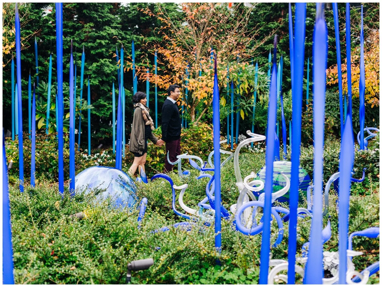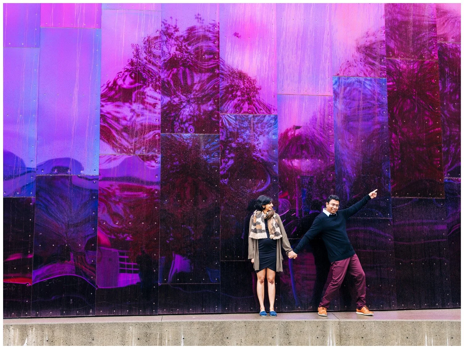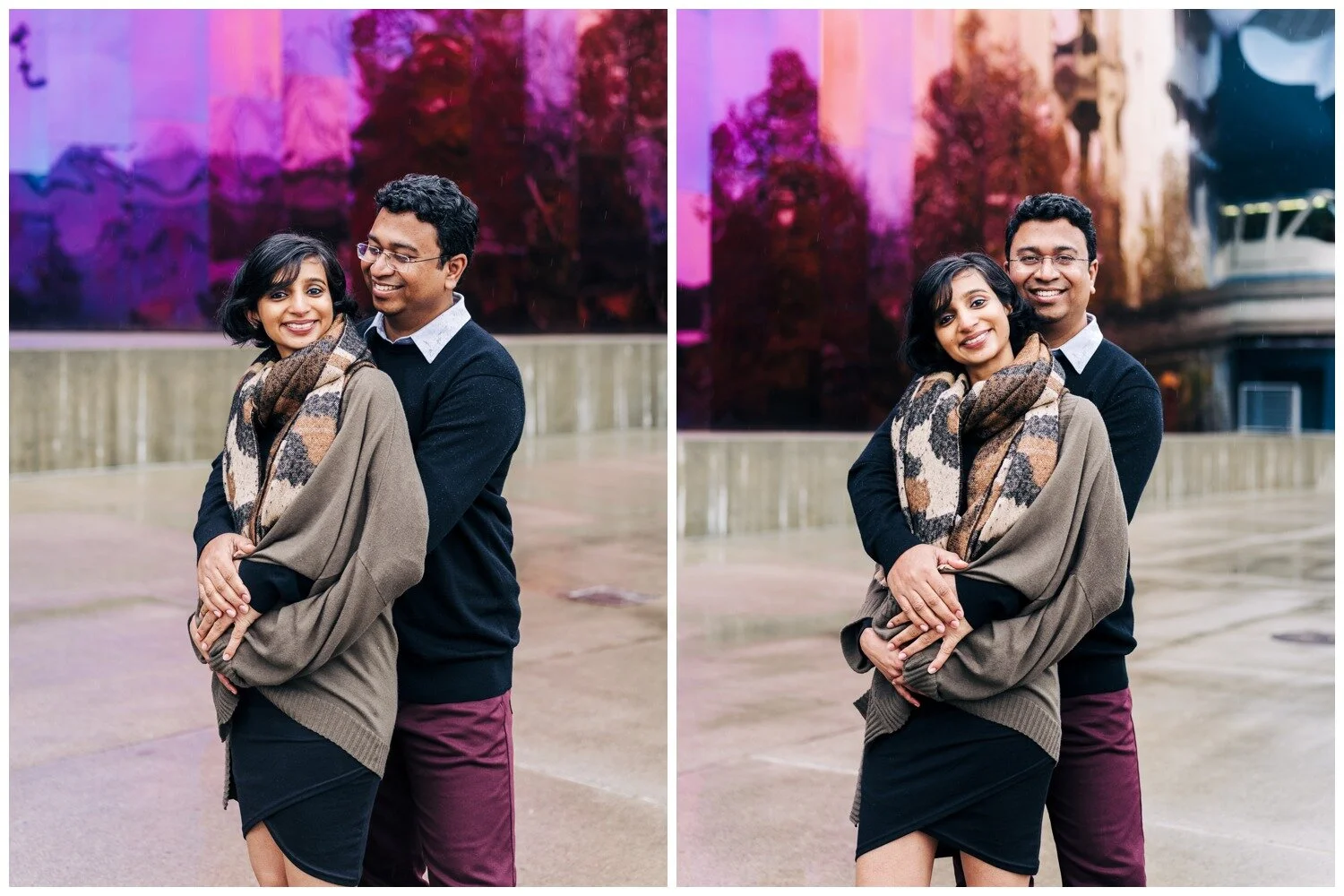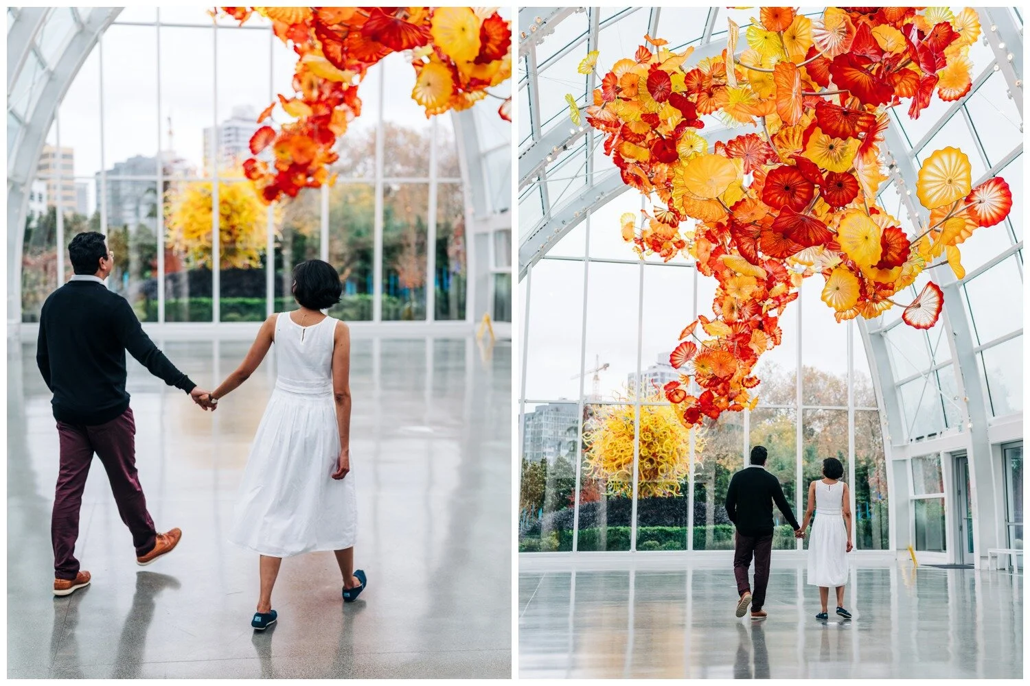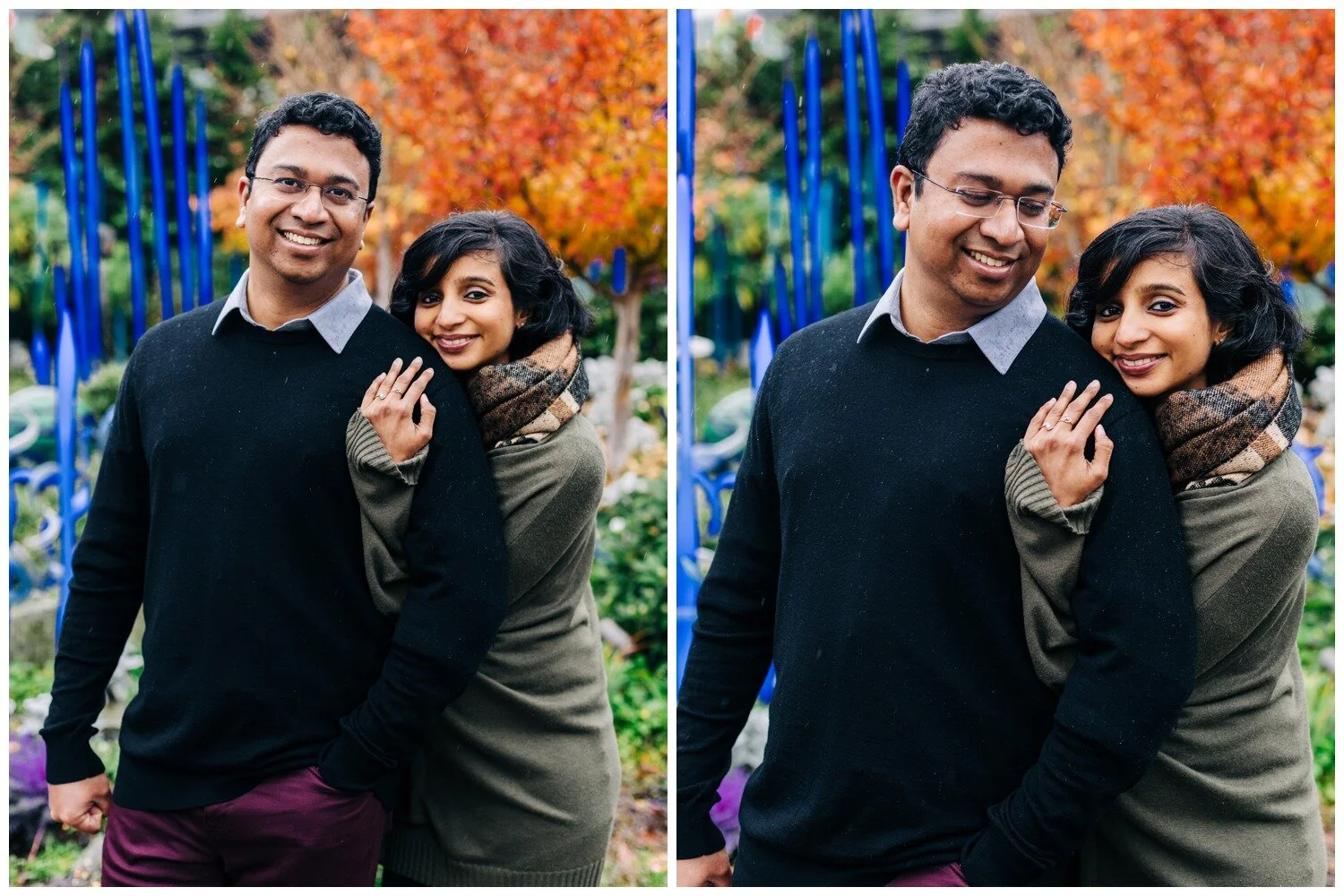 This was truly one of the cutest maternity sessions of all time! Dhrishya found me on Instagram and when she first inquired, telling me that she was thinking of doing a photo session at the Chihuly Garden and Glass in Seattle I was ready for it! To our collective surprise, the museum is (as of this writing) accepting of professional photographers working within the museum space. It takes a little strategy to be able to work best with the crowds of museum-goers to get shots where the space feels fairly empty, but this couple took every bit of advice I offered and we had a wonderful time. Despite rain that started falling mid-way through our time together they remained just as goofy and sweet as they were at the start and I could not get enough of them! I loved all of the personality that came through in these photos without needing any sort of prompts from me. Just a couple months after we snapped these photos Dhrishya welcomed a beautiful and happy baby girl into the world and I am so happy for both new parents, and their adorable new bundle!