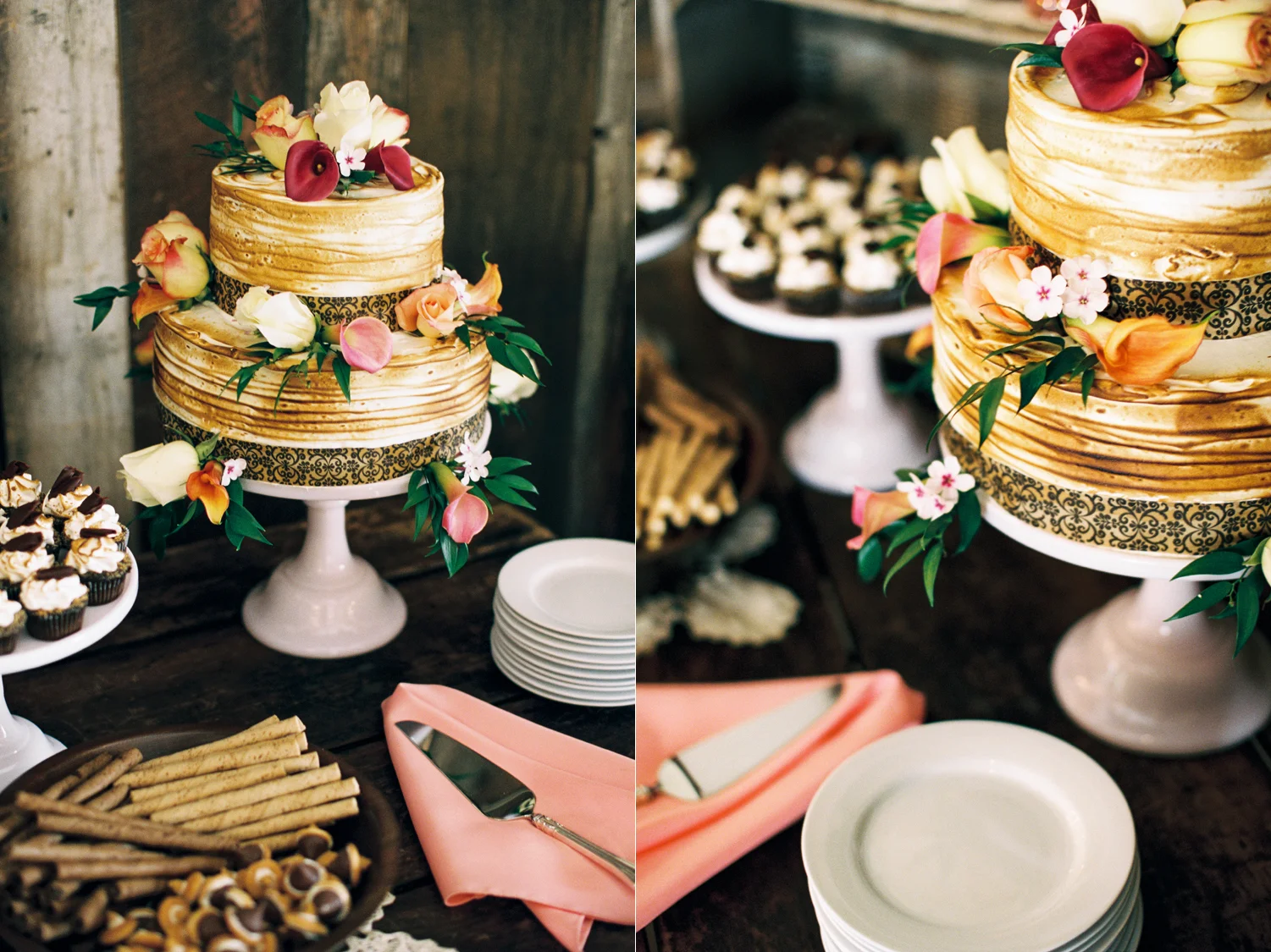 Brandon & Tracy’s wedding was a beautiful mixture of romance and whimsy. The walls of Cottonwood Canyon served as the ceremony backdrop, while bright and bold colors filled in some of the additional details of the day. Brandon’s homemade cookies were favors for guests, and Tracy’s dear friend Nicholas did an amazing job with a custom s’mores cake with matching bite size pastries for dessert. They planted a tree during their ceremony as a symbol of their relationship and how it will grow overtime. The couple focused on making their wedding welcoming to their whole family, casual, fun, and stress free; and their efforts were a huge success.