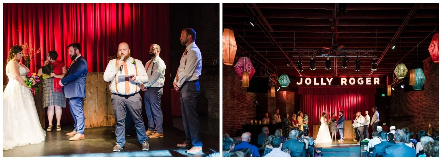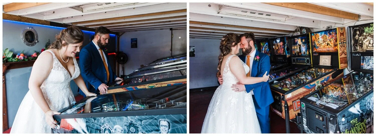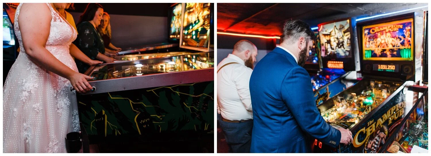 Balloon drops and pin ball at a wedding? Sign me up! When I first talked with Erin & Jordan about their wedding photography they described their plans to me and I instantly wanted to be a part of their big day. Erin & Jordan moved here from the mid-west several years ago and live near the Georgetown neighborhood in Seattle, so when they started planning their wedding they deliberately chose a venue and elements that showed off their favorite aspects of their adopted home town to visiting relatives. Their personalities are colorful and fun-loving and their wedding was right in line with that.