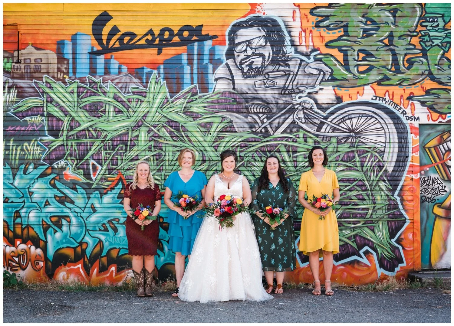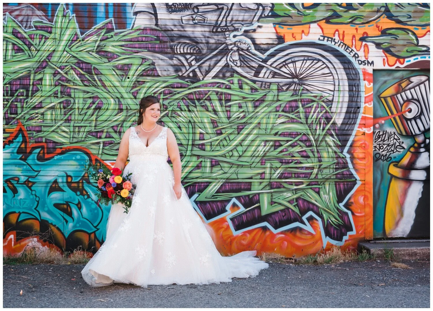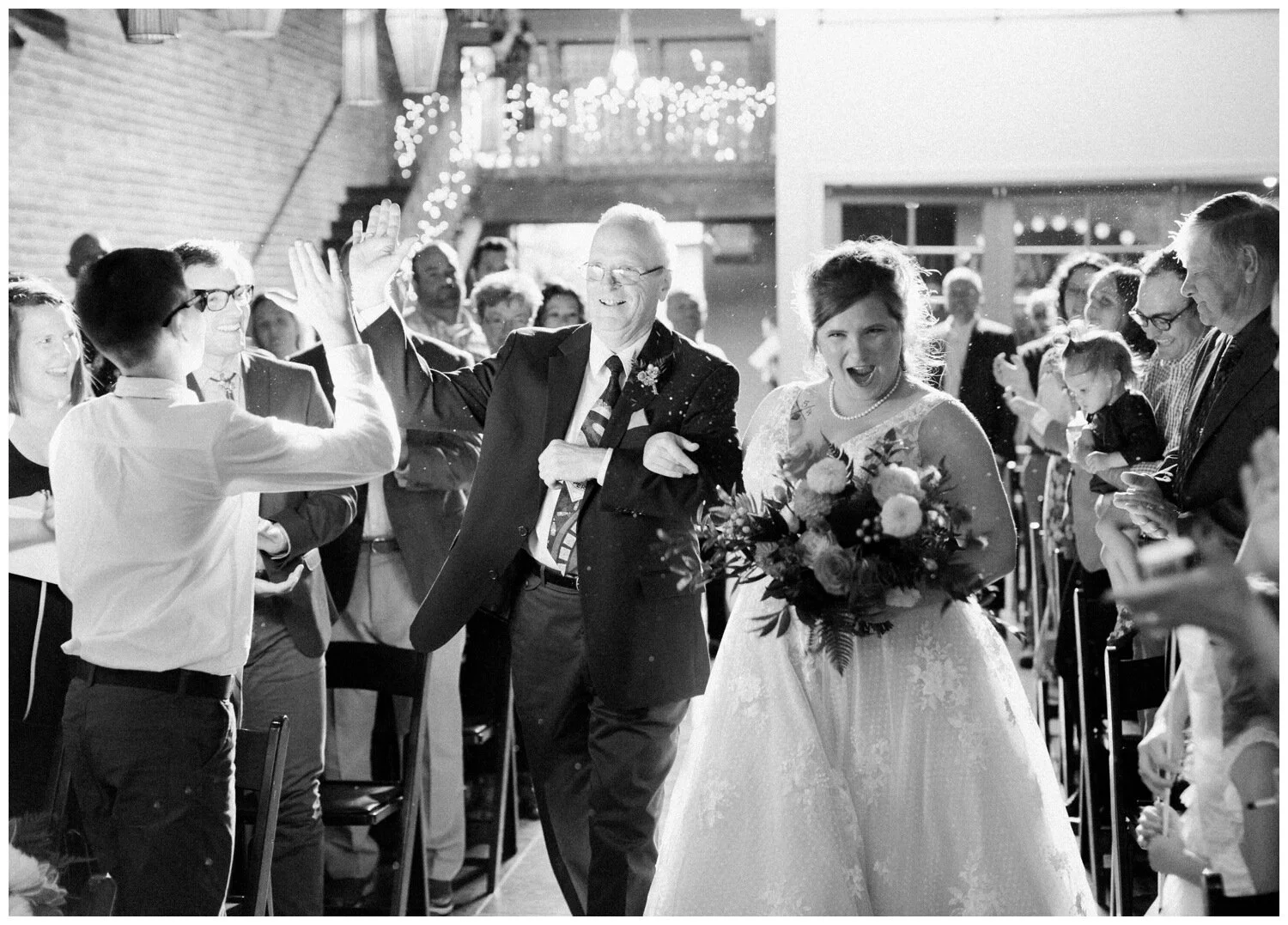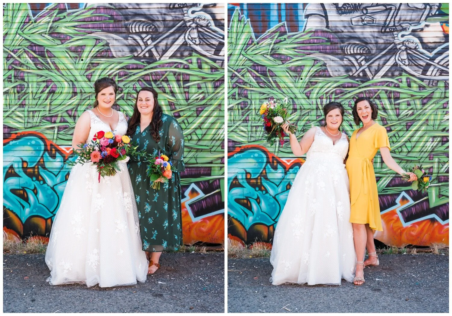 After the couple’s first look we took a walk to Flip Flip Ding Ding! in the Georgetown neighborhood for some relaxing game play and funky wedding party photos. We wanted the wedding party portraits to feel true to the Georgetown vibe – so the wall murals and street art were perfect for this! The couple and their wedding party danced down the aisle during the ceremony and after the “I do”s they recessed under an avalanche of brightly colored balloons. Is there a way that we can do balloon drops at every wedding?