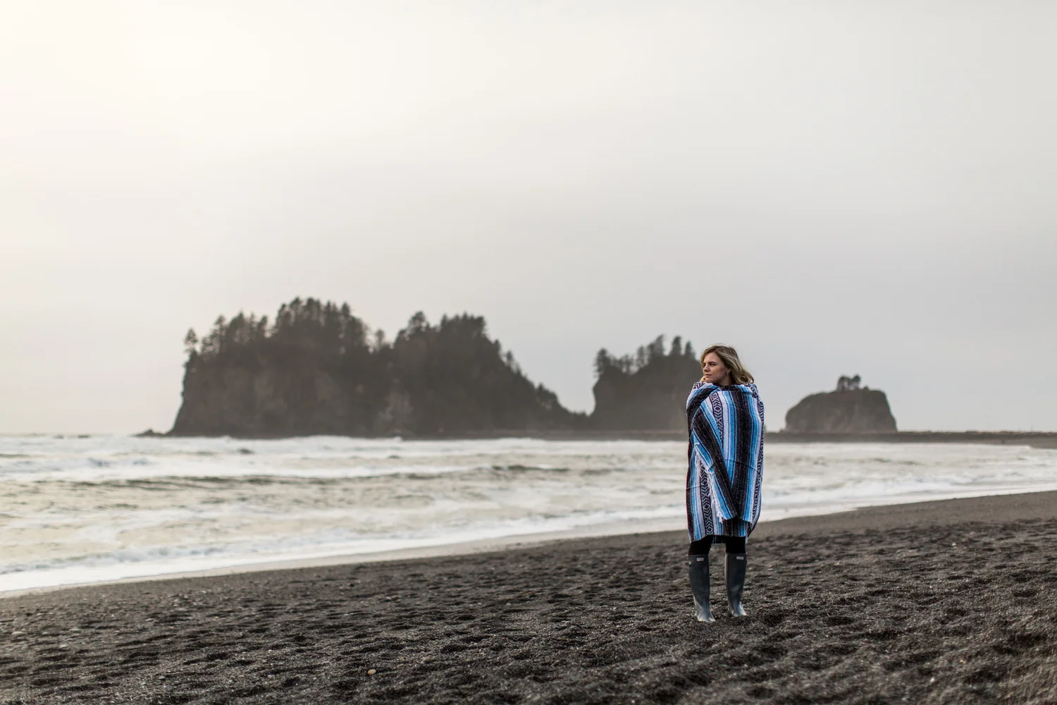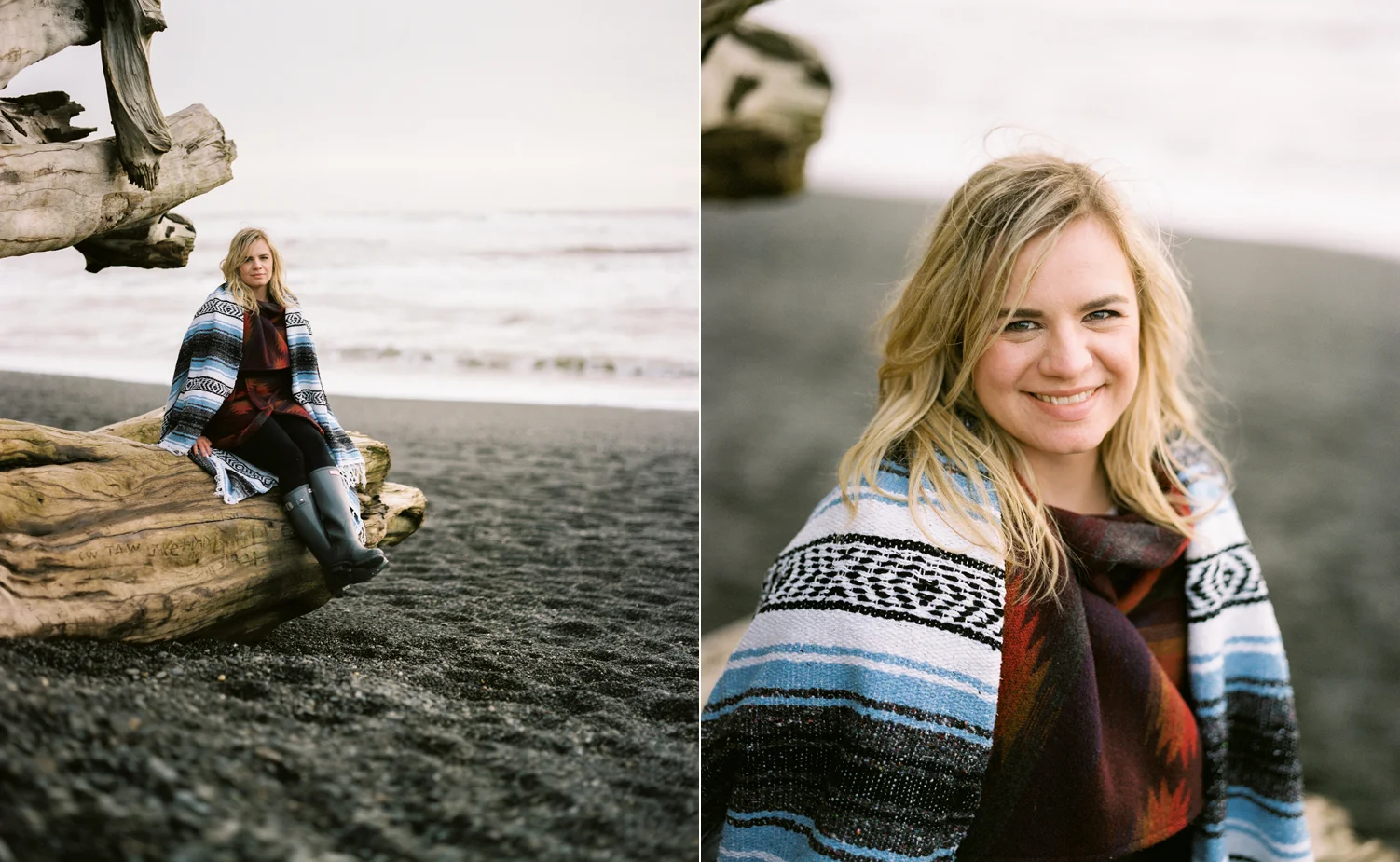 During the gloomiest of winter weeks I start to get a little cabin fever and feel a need to get out and go shoot something. Naturally, the clouds and rain aren’t much good for paid client shoots. But thankfully I have some amazing friends that will go on whimsical adventures with me for no other reason than to be in a beautiful place, explore somewhere new, and disconnect from life a bit. Sarah and I have shot together before and she is not only perfect in front of a camera, but an awesome road trip buddy. The round trip to get to First Beach from Seattle involves more than nine hours of driving time plus two ferry rides, but the trip was completely worth it to get to this gorgeous spot (it doesn’t hurt that we had everything to talk about from our shared love of Beyonce to our shared distain for certain Presidential candidates).