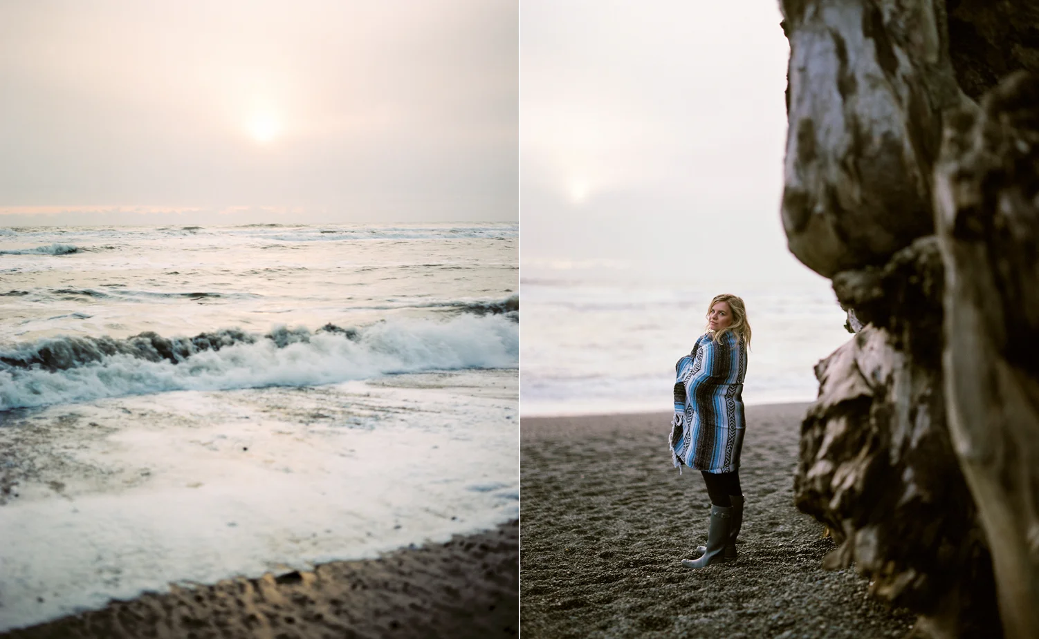This was my first visit to First Beach in La Push, along the northwestern Washington coast. We were blessed with a warm day and there was sun abound. As the sunset crept in the sky turned this gorgeous peach color and filled with mist and moodiness. I was armed with a handful of expired rolls of film and my most recent camera obsession – my Pentax 6×7 medium format camera. It’s also coming with me to Nepal! This was a perfect first visit to a beautiful place I will definitely return to soon and I am so tickled with how the images turned out. Thanks for the killer adventure, Sarah!