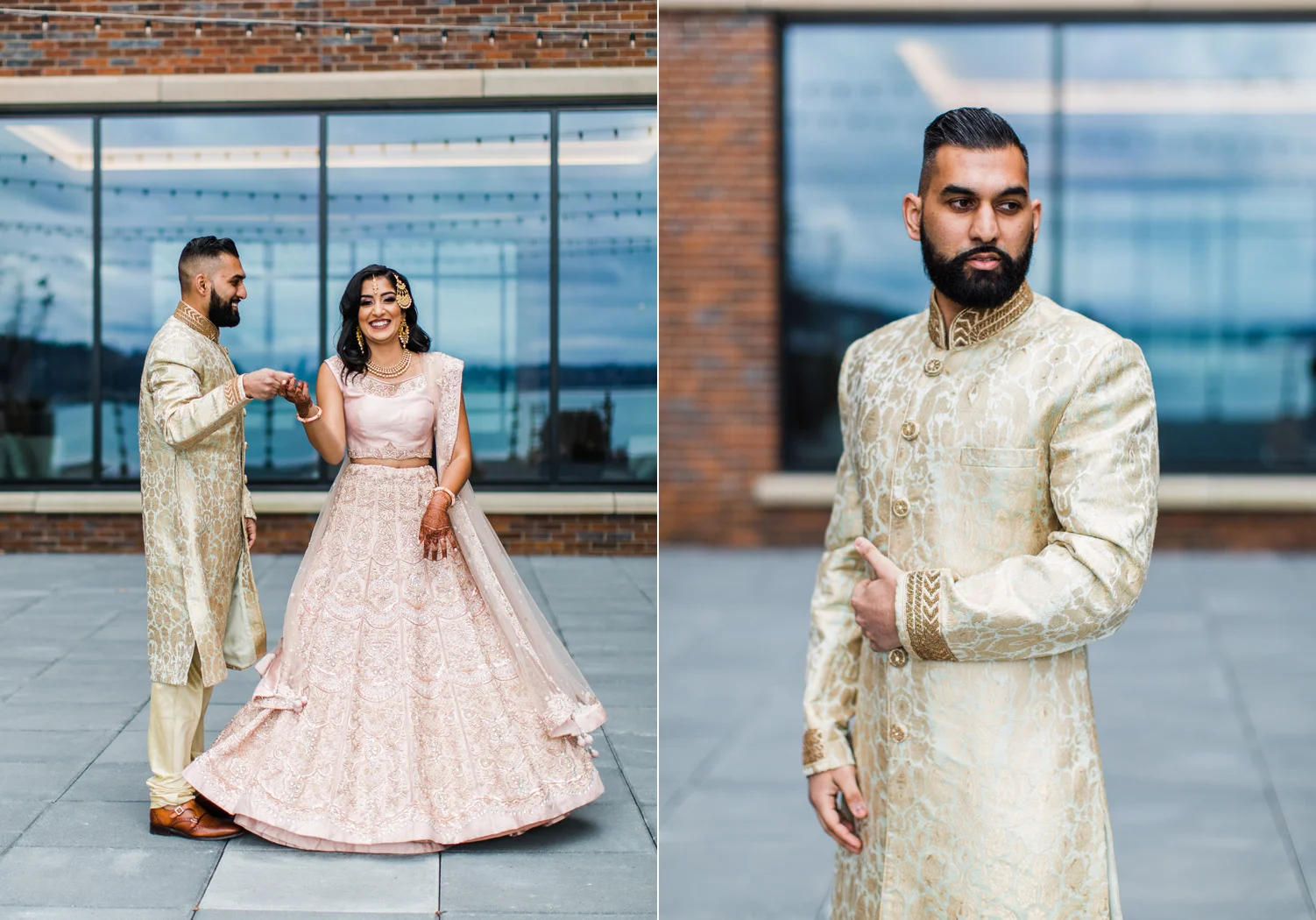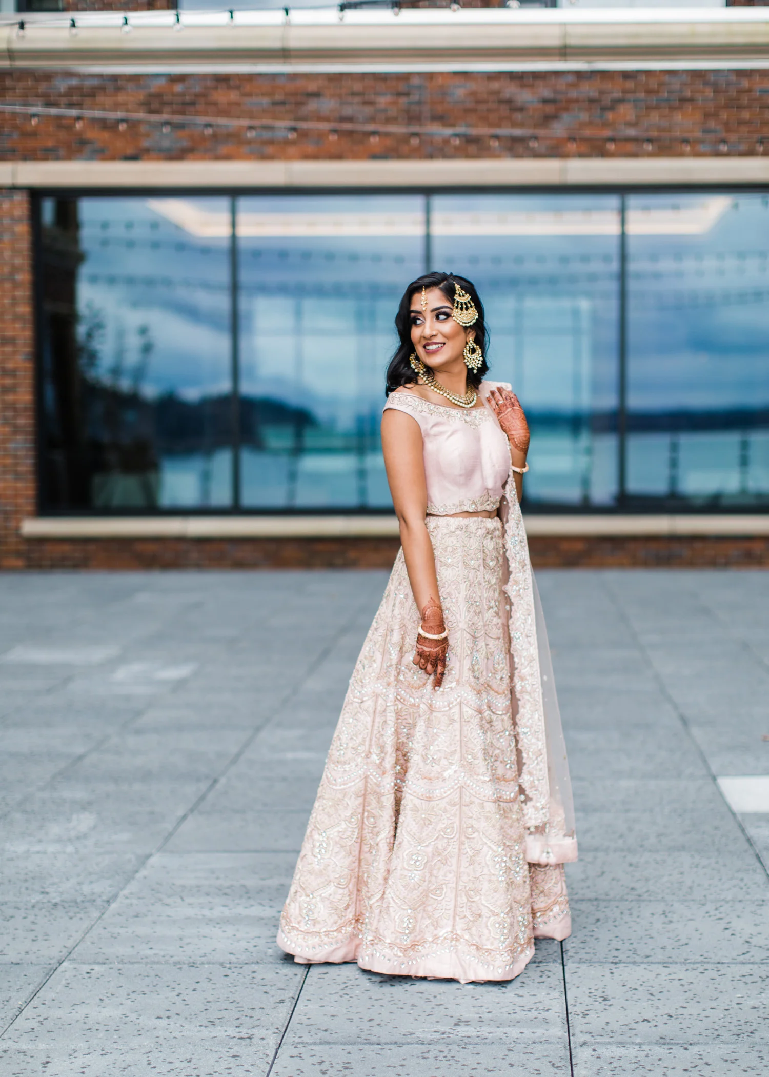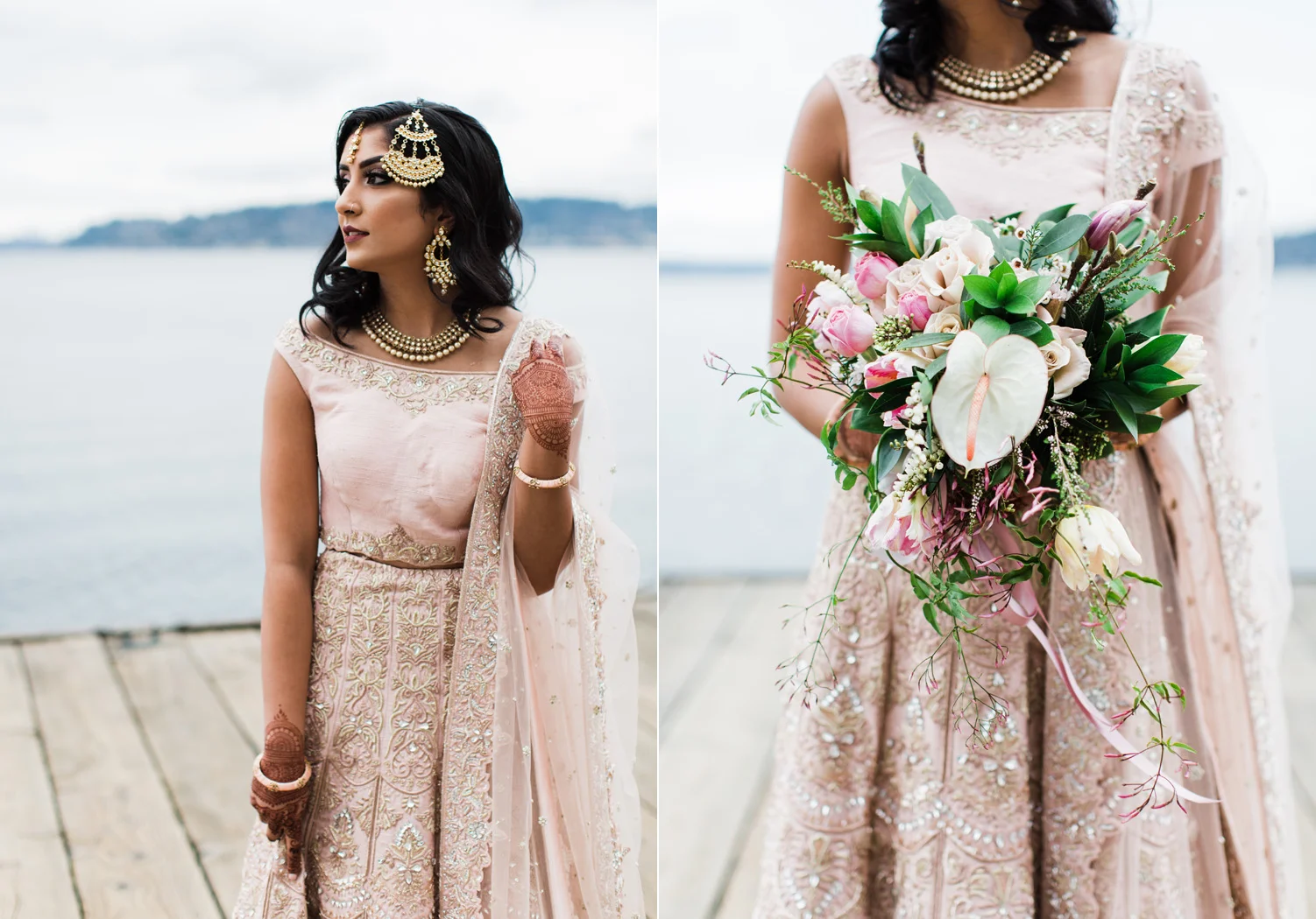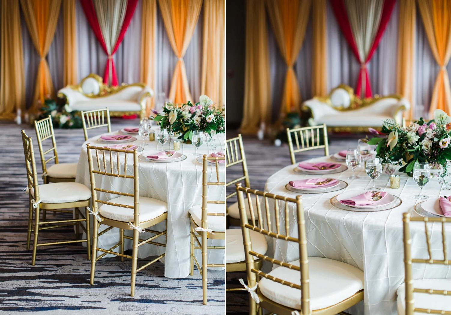 I love all of the tradition that is woven in to the decor, the attire, hair and makeup, and more. When Annu from Always Planning for You reached out to me to ask if I’d be interested in photographing an editorial shoot she was coordinating I jumped at the chance because this vision sounded so amazing. An Indian bride and groom in traditional wedding attire – except the colors are pushing the limits of “traditional” by a color other than red. Instead, we embraced popular color trends and chose gold and blush pink as the dominant colors of the shoot. Thanks to Annu’s great coordination, gold and pink were woven into every aspect of this styled wedding – the table settings, florals, mandap ceremony backdrop, wardrobe, invitation suite, jewelry and so much more. Please scroll down to see every detail including the incredible henna work. Every vendor included in this shoot worked so hard and they are all listed below for you to follow!