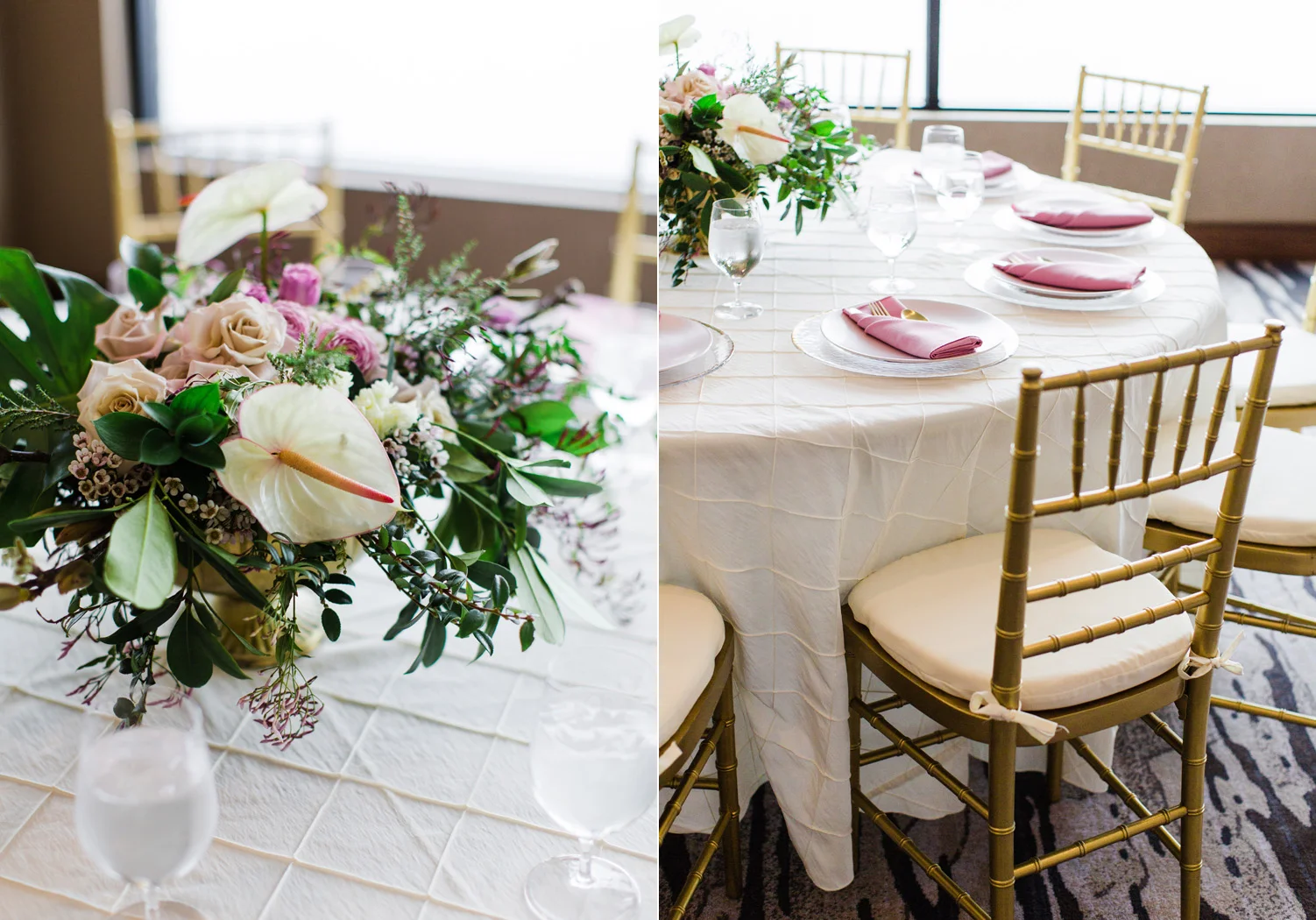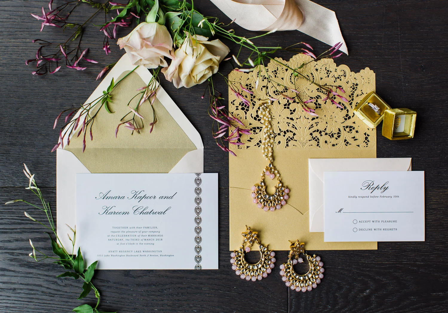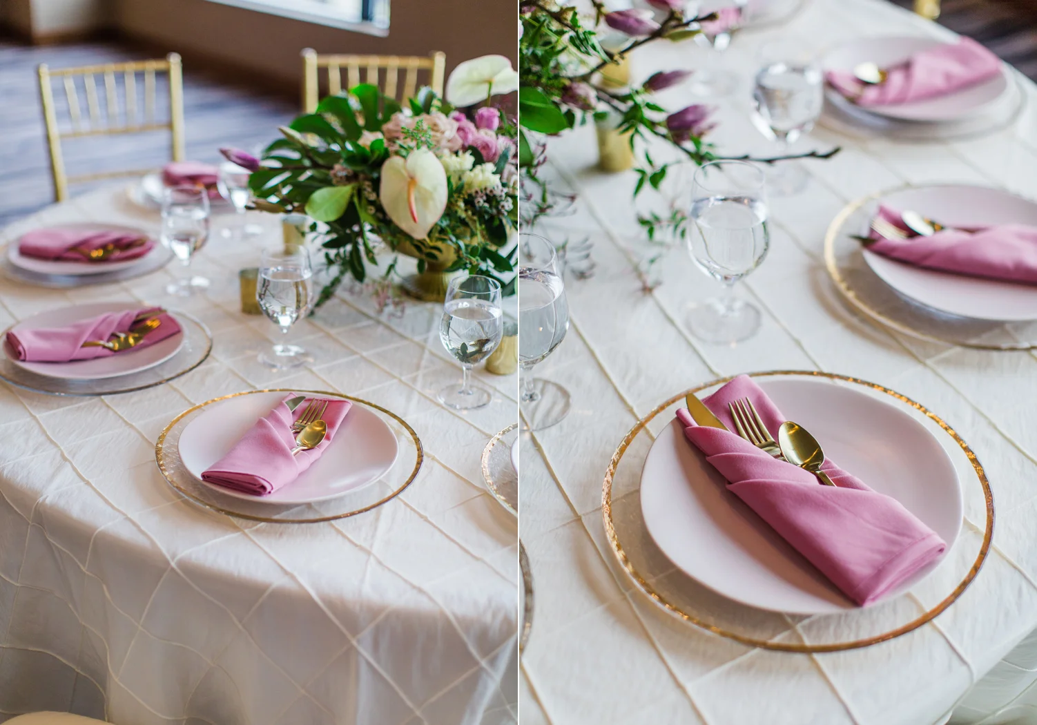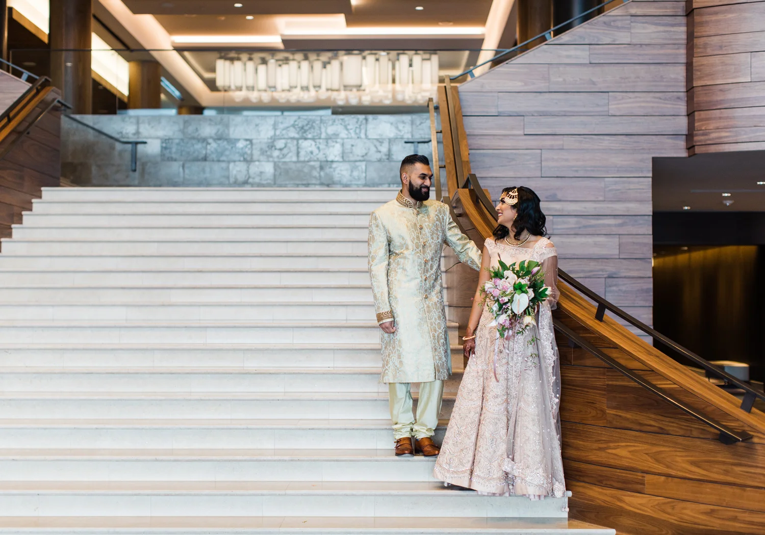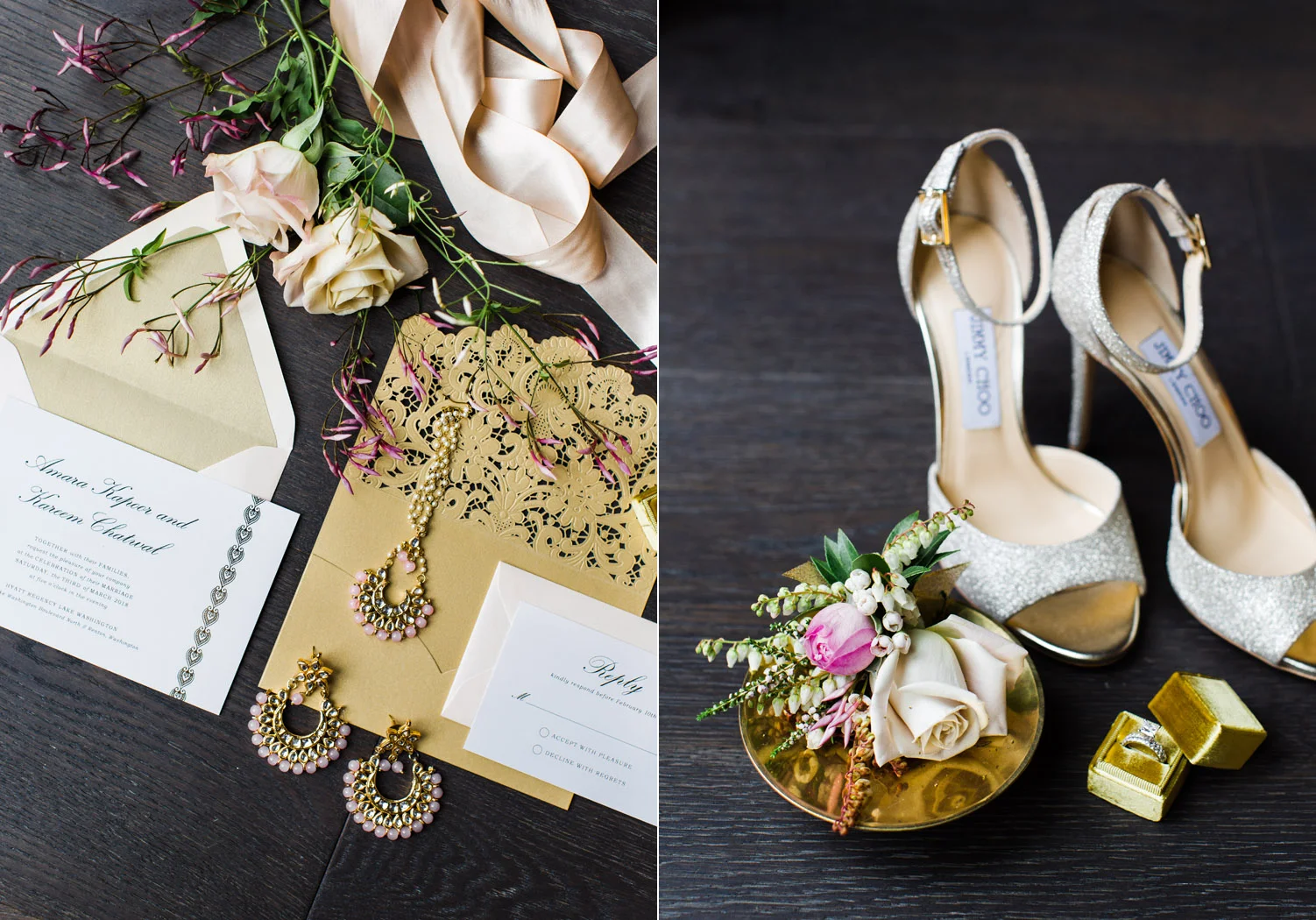 I love all of the tradition that is woven in to the decor, the attire, hair and makeup, and more. When Annu from Always Planning for You reached out to me to ask if I’d be interested in photographing an editorial shoot she was coordinating I jumped at the chance because this vision sounded so amazing. An Indian bride and groom in traditional wedding attire – except the colors are pushing the limits of “traditional” by a color other than red. Instead, we embraced popular color trends and chose gold and blush pink as the dominant colors of the shoot. Thanks to Annu’s great coordination, gold and pink were woven into every aspect of this styled wedding – the table settings, florals, mandap ceremony backdrop, wardrobe, invitation suite, jewelry and so much more. Please scroll down to see every detail including the incredible henna work. Every vendor included in this shoot worked so hard and they are all listed below for you to follow!