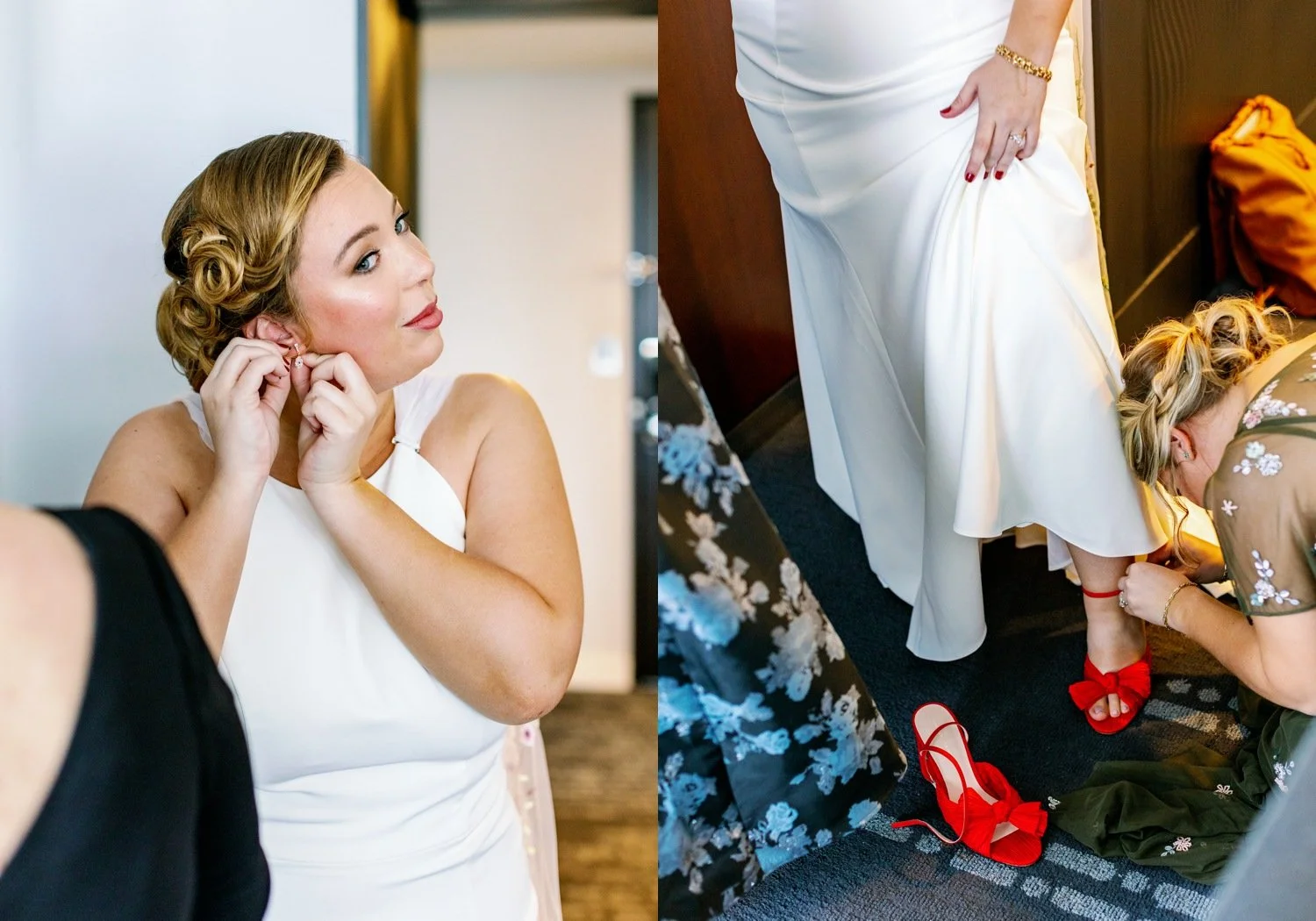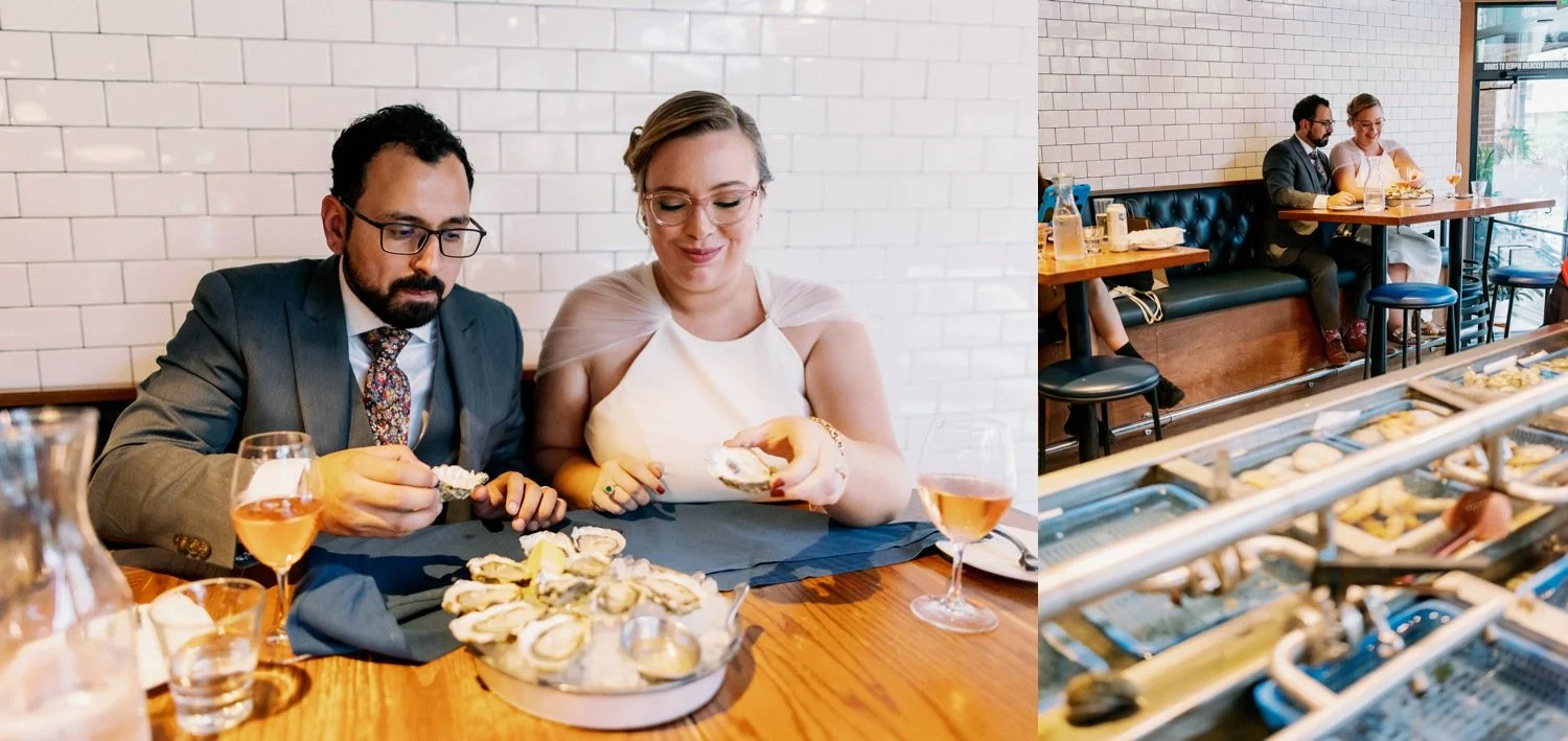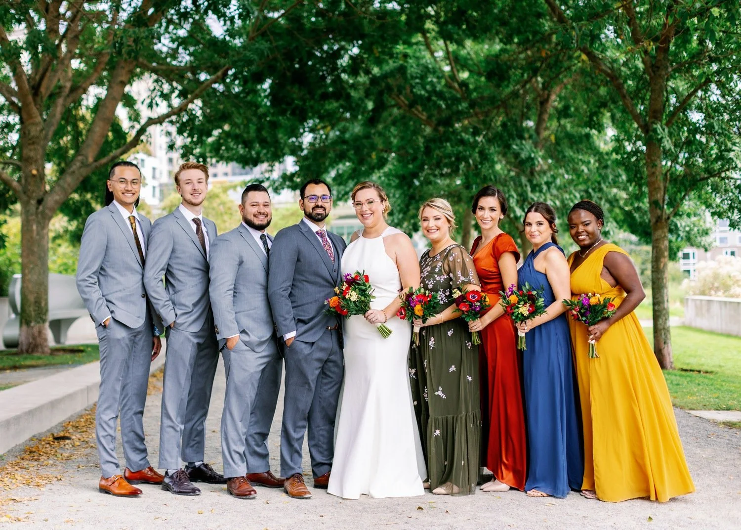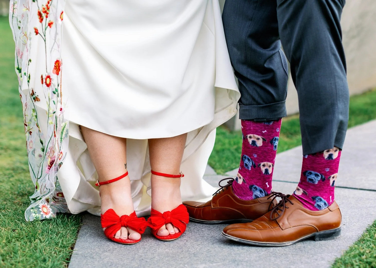 Peep the red heels to match the red flowers in her veil, the emerald ring as her “something borrowed”, the bold and beautiful color palette the wedding party is wearing (the guys’ ties match the gals’ dresses) and the couple sneaking away for a private moment at the local oyster bar after the ceremony. There was even a mariachi band that greeted guests and entertained during the dinner hour. This wedding was such a fun one!