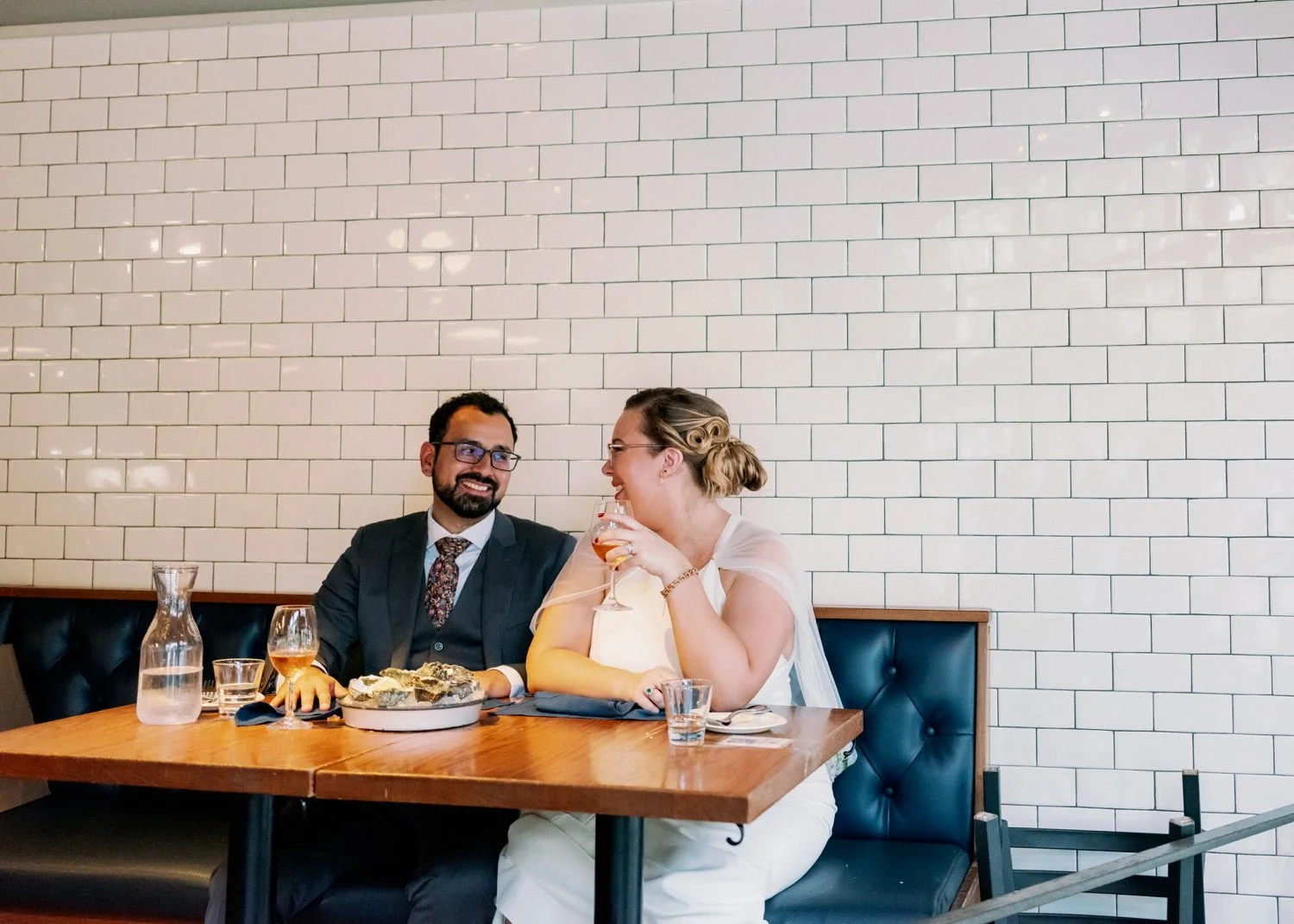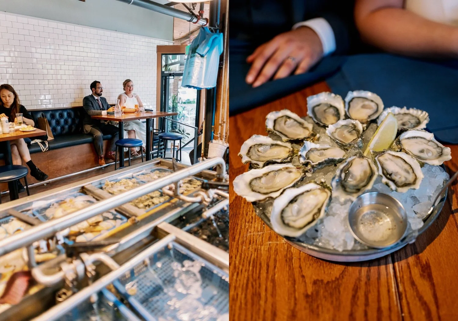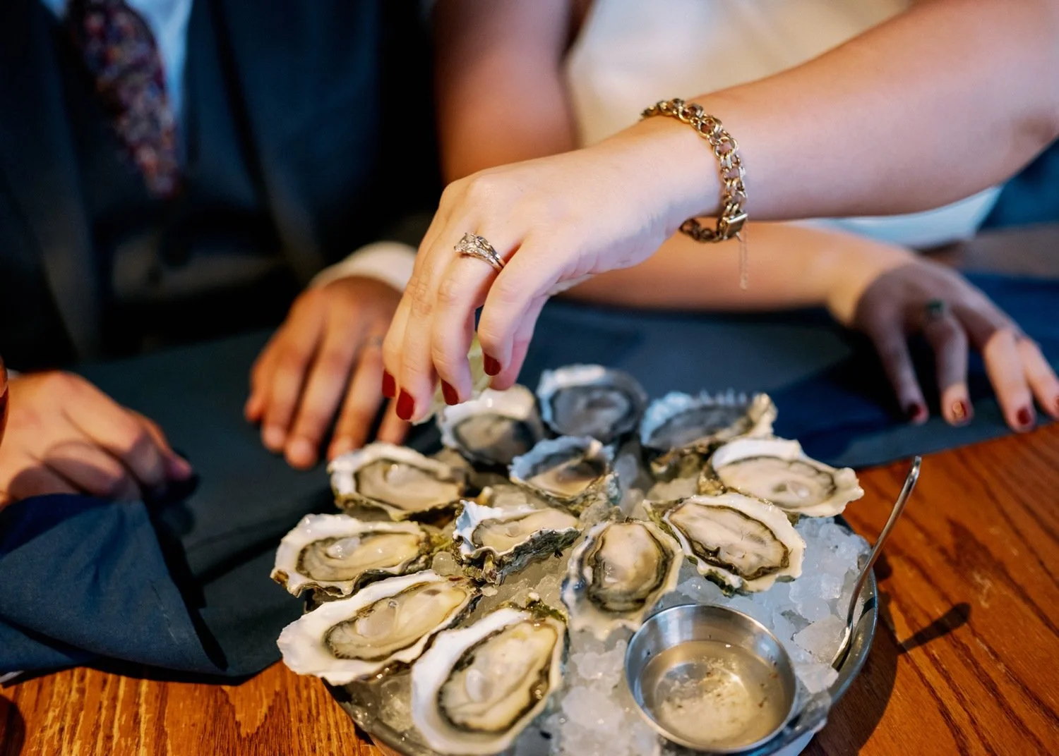 Peep the red heels to match the red flowers in her veil, the emerald ring as her “something borrowed”, the bold and beautiful color palette the wedding party is wearing (the guys’ ties match the gals’ dresses) and the couple sneaking away for a private moment at the local oyster bar after the ceremony. There was even a mariachi band that greeted guests and entertained during the dinner hour. This wedding was such a fun one!