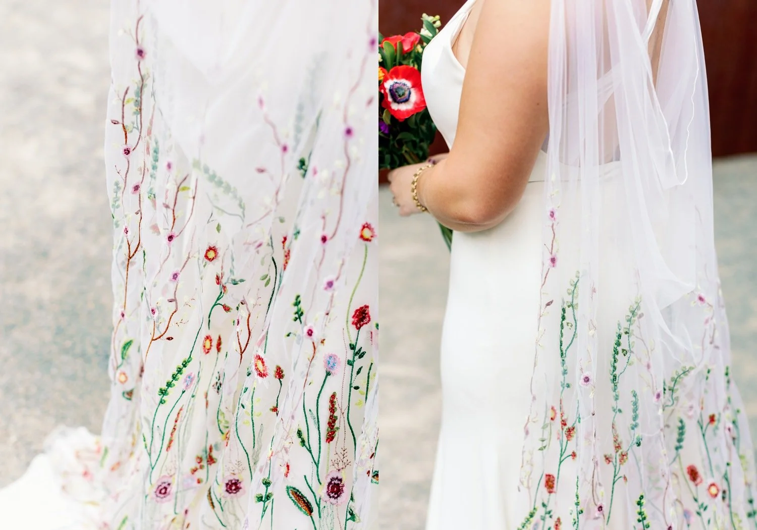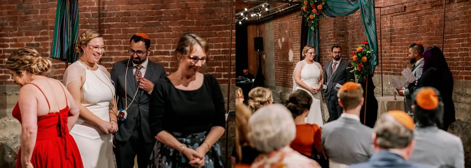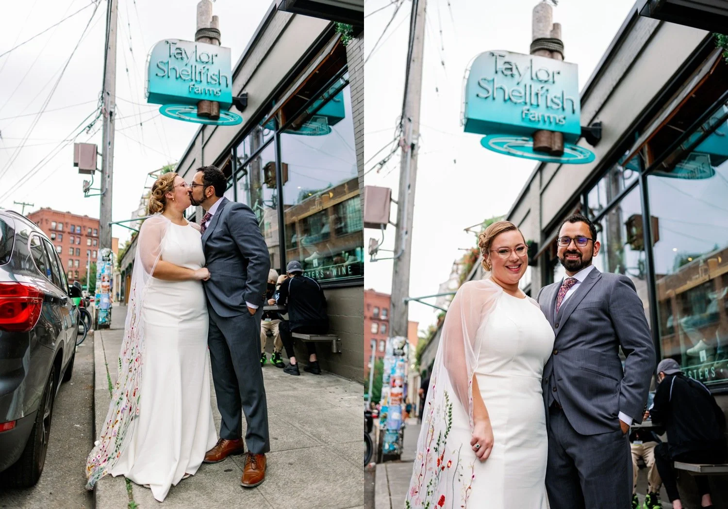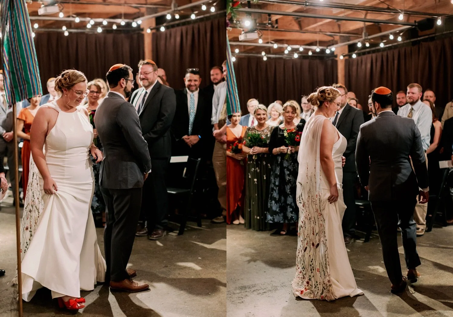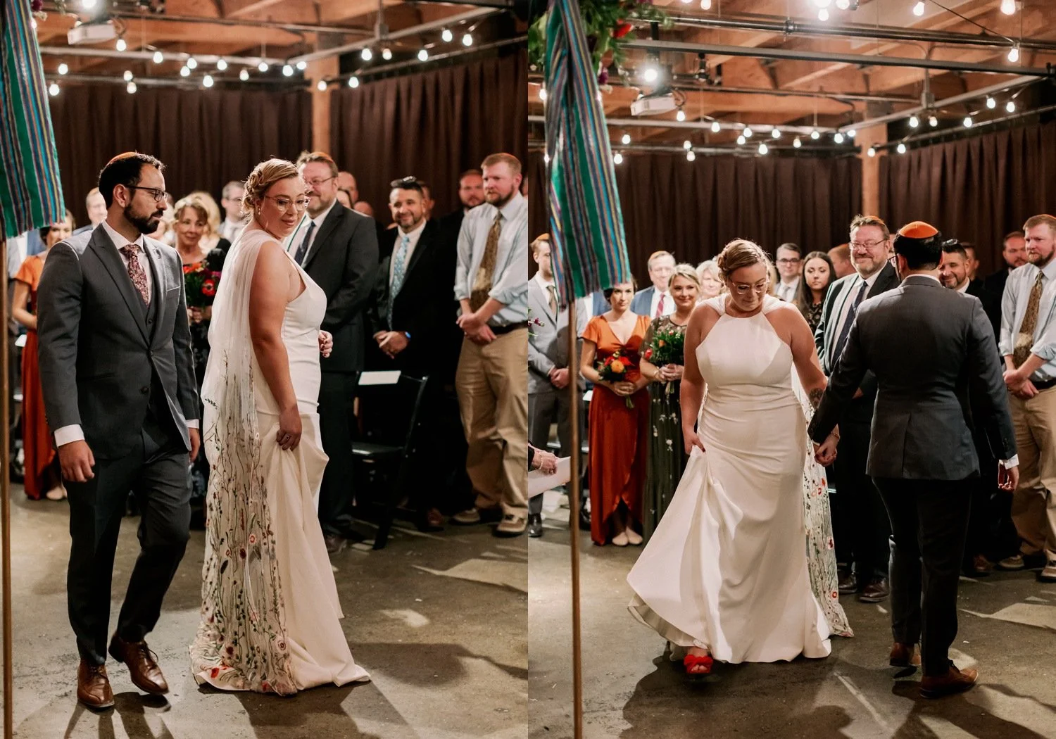Check out ALLLLLL the color jam packed into Dominique & Victor’s wonderful wedding at Melrose Market Studios in Seattle! This wedding was so fulfilling to document thanks to all of the personal touches incorporating Vince’s Latin American heritage, the couple’s Jewish ceremony under the chuppah, the groom’s love of dinosaurs and the bride’s classic wedding style accented by a colorful embroidered veil. You MUST see the veil! Or is it a cape? Either way I could have photographed this bride and her impeccable bridal ensemble for hours.