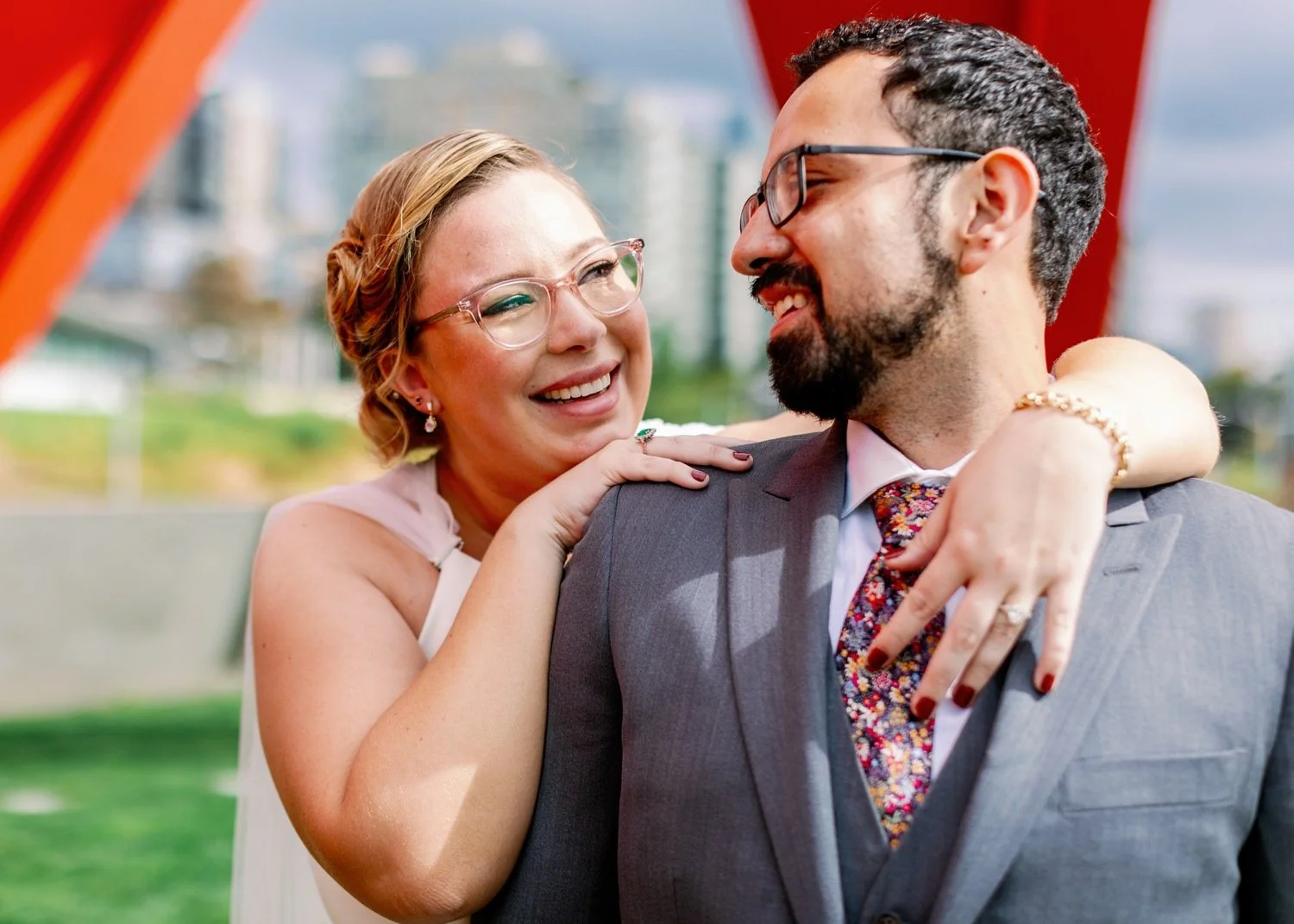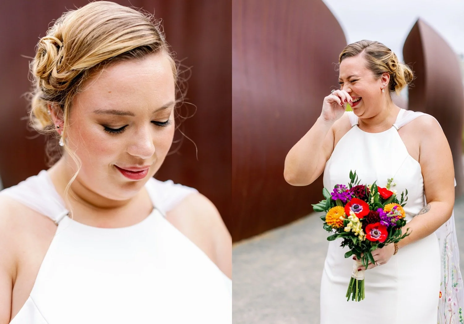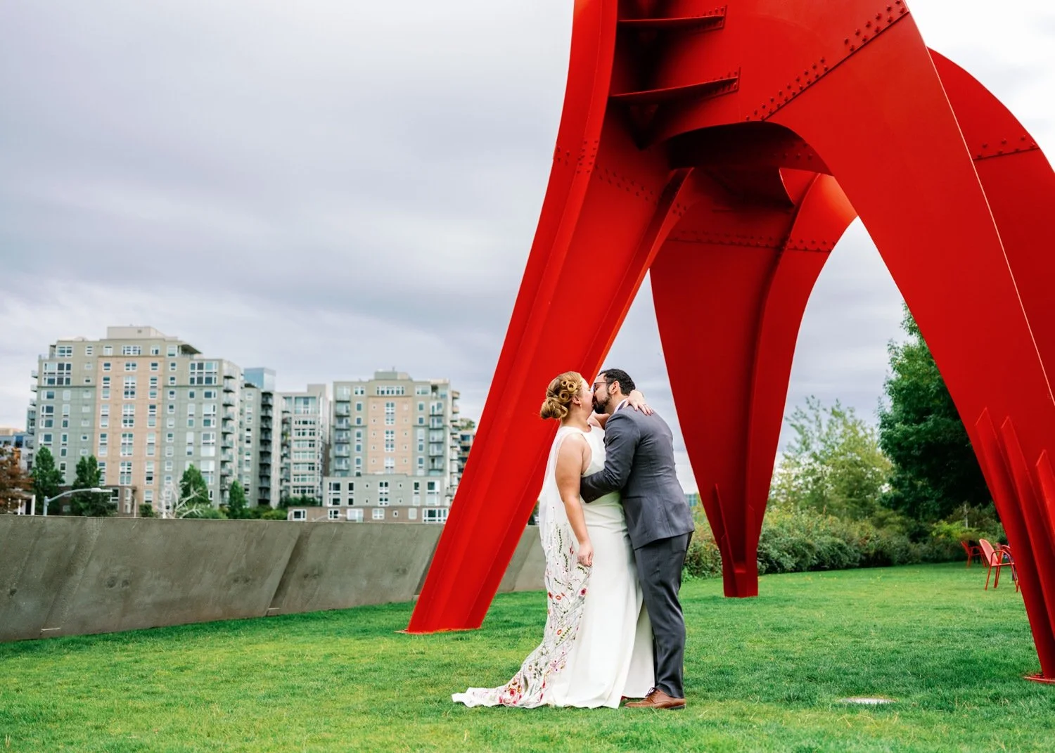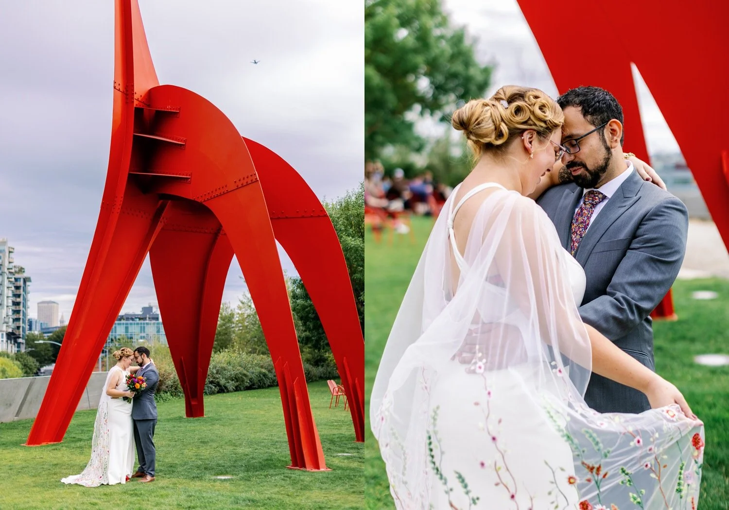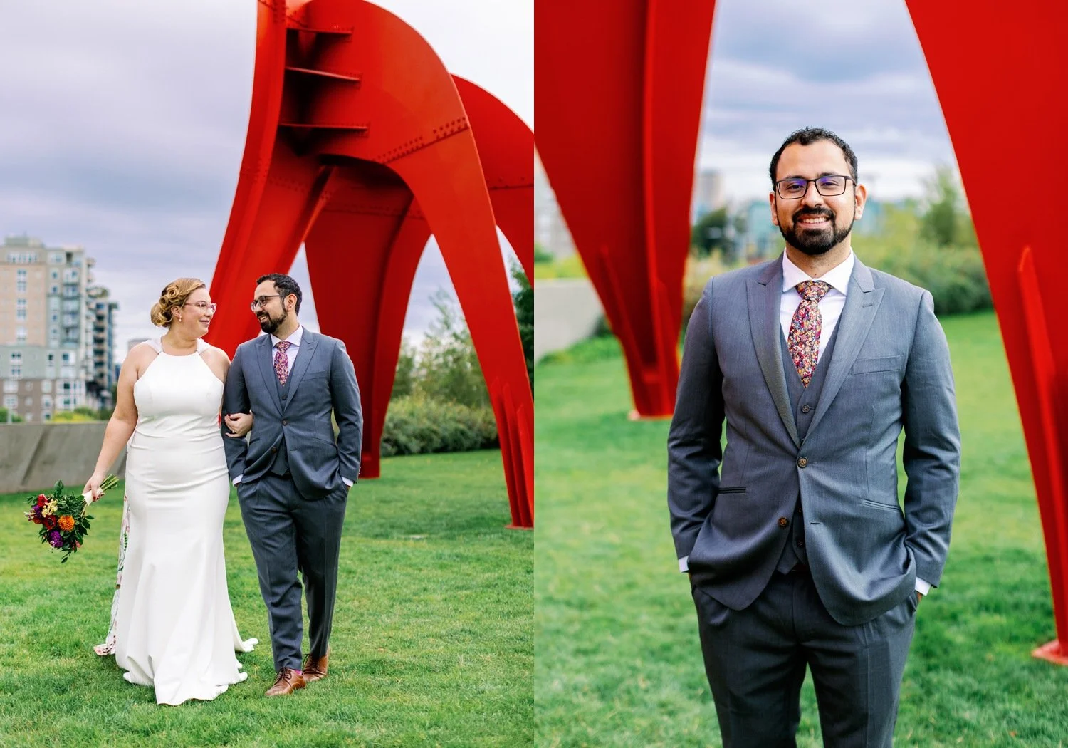 Check out ALLLLLL the color jam packed into Dominique & Victor’s wonderful wedding at Melrose Market Studios in Seattle! This wedding was so fulfilling to document thanks to all of the personal touches incorporating Vince’s Latin American heritage, the couple’s Jewish ceremony under the chuppah, the groom’s love of dinosaurs and the bride’s classic wedding style accented by a colorful embroidered veil. You MUST see the veil! Or is it a cape? Either way I could have photographed this bride and her impeccable bridal ensemble for hours.