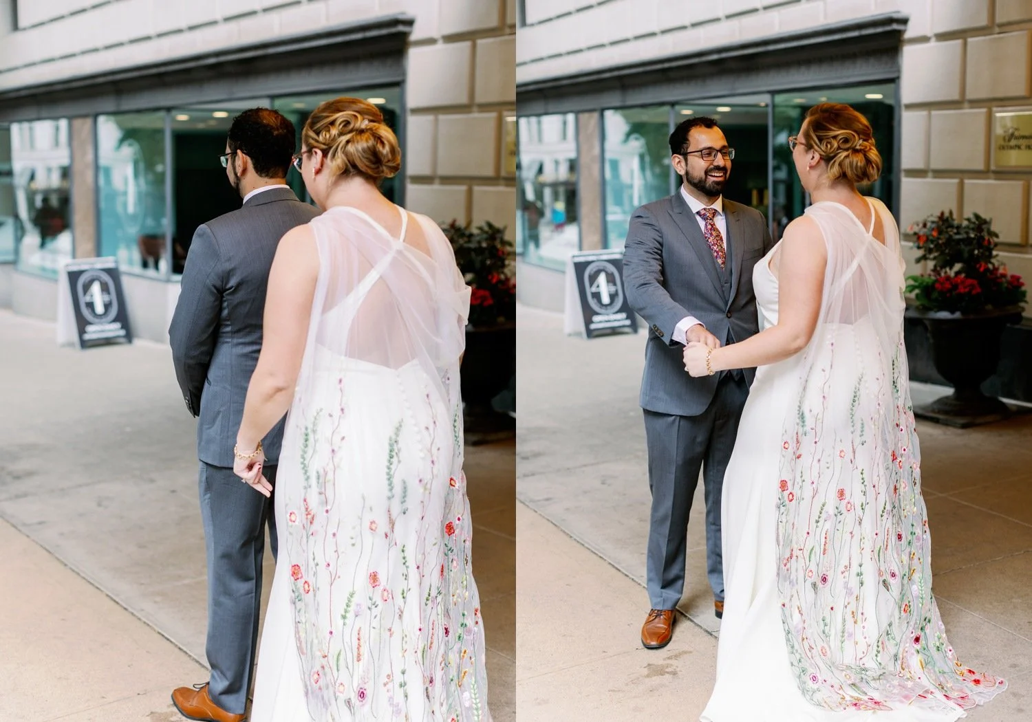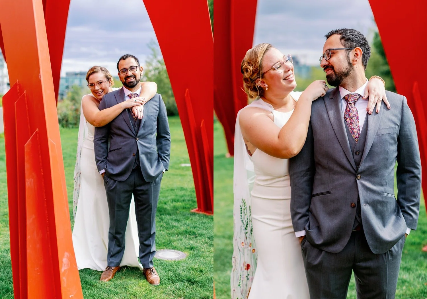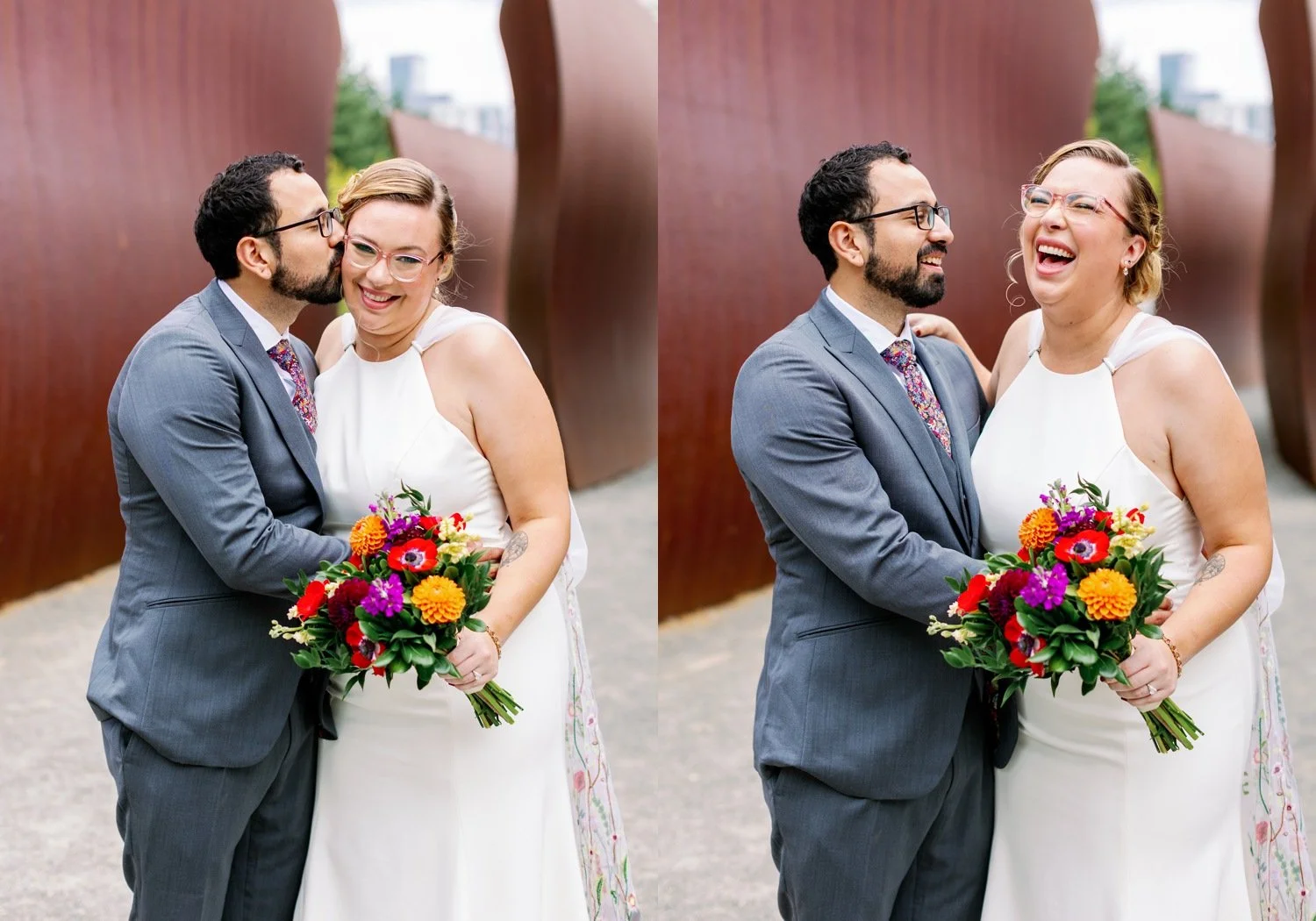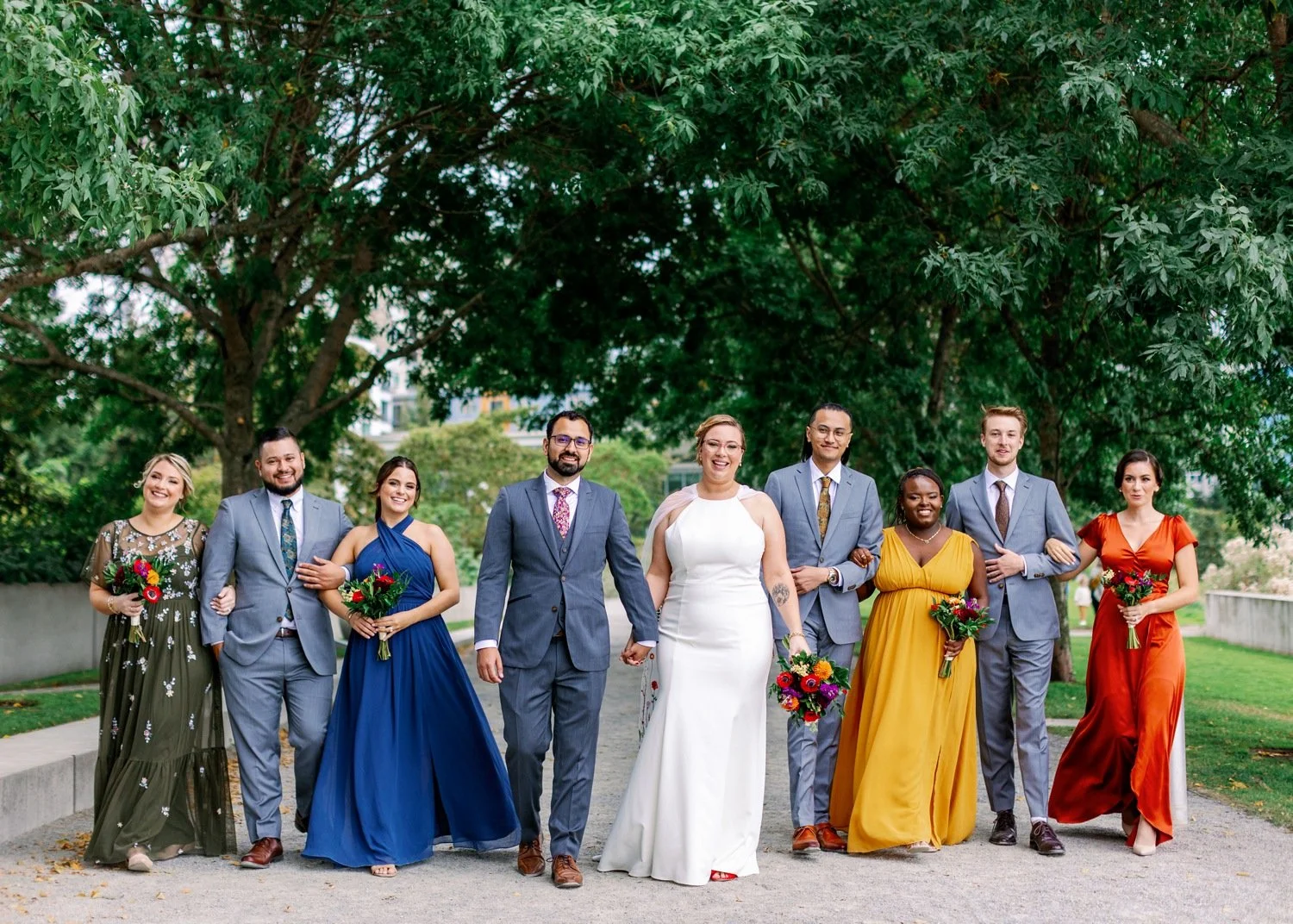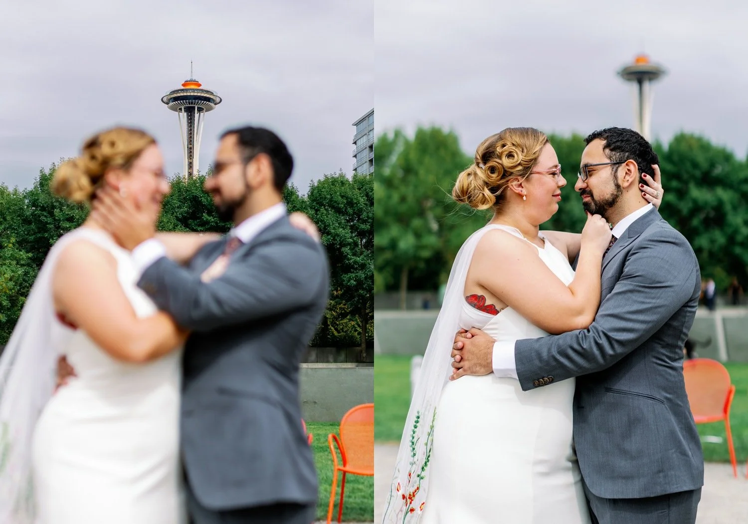 Check out ALLLLLL the color jam packed into Dominique & Victor’s wonderful wedding at Melrose Market Studios in Seattle! This wedding was so fulfilling to document thanks to all of the personal touches incorporating Vince’s Latin American heritage, the couple’s Jewish ceremony under the chuppah, the groom’s love of dinosaurs and the bride’s classic wedding style accented by a colorful embroidered veil. You MUST see the veil! Or is it a cape? Either way I could have photographed this bride and her impeccable bridal ensemble for hours.