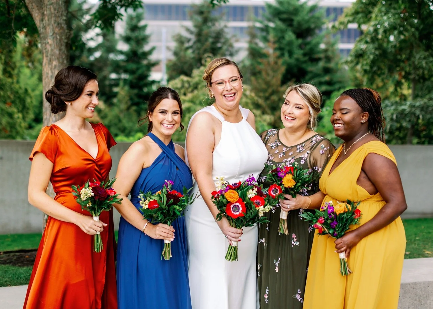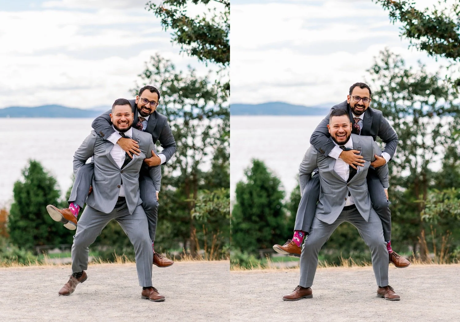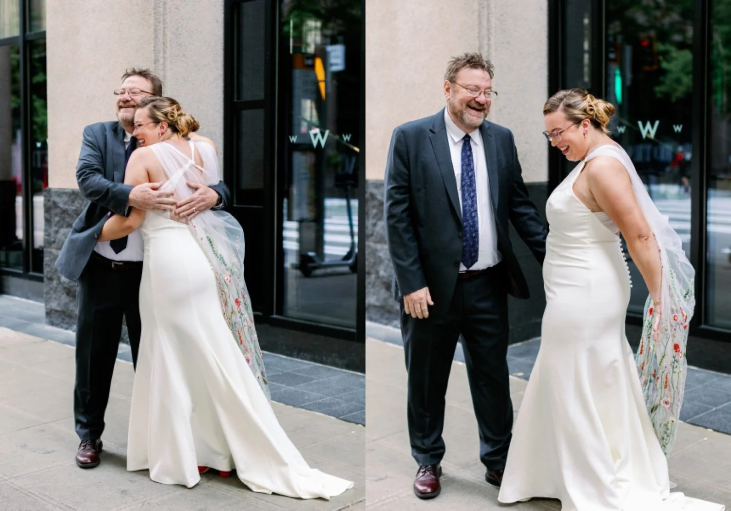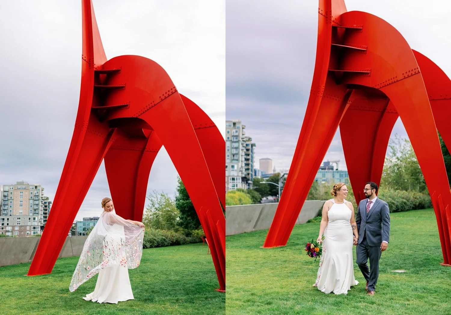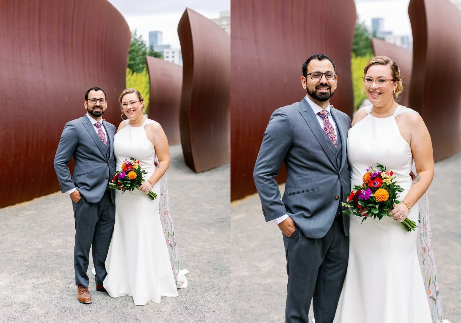 Check out ALLLLLL the color jam packed into Dominique & Victor’s wonderful wedding at Melrose Market Studios in Seattle! This wedding was so fulfilling to document thanks to all of the personal touches incorporating Vince’s Latin American heritage, the couple’s Jewish ceremony under the chuppah, the groom’s love of dinosaurs and the bride’s classic wedding style accented by a colorful embroidered veil. You MUST see the veil! Or is it a cape? Either way I could have photographed this bride and her impeccable bridal ensemble for hours.