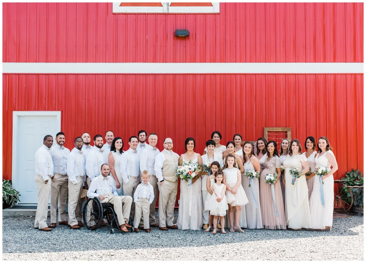 Pale Neutral and White Wedding Party Style at Stocker Farms