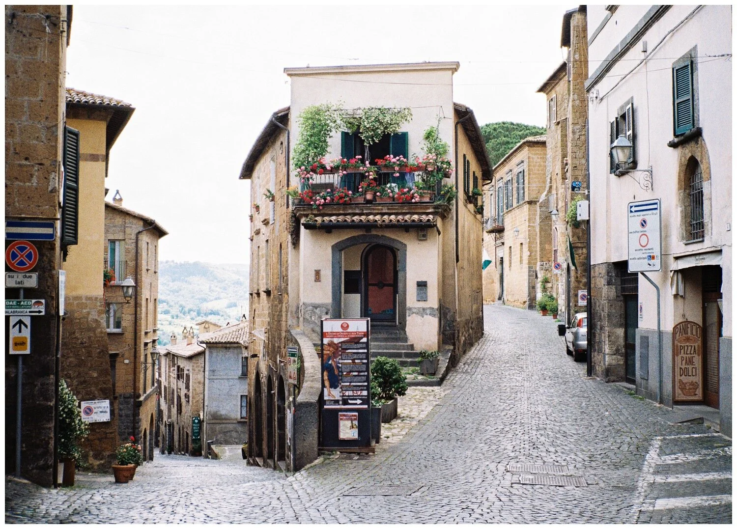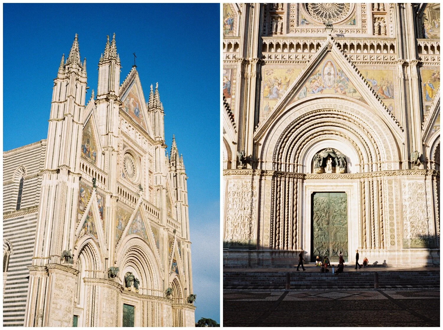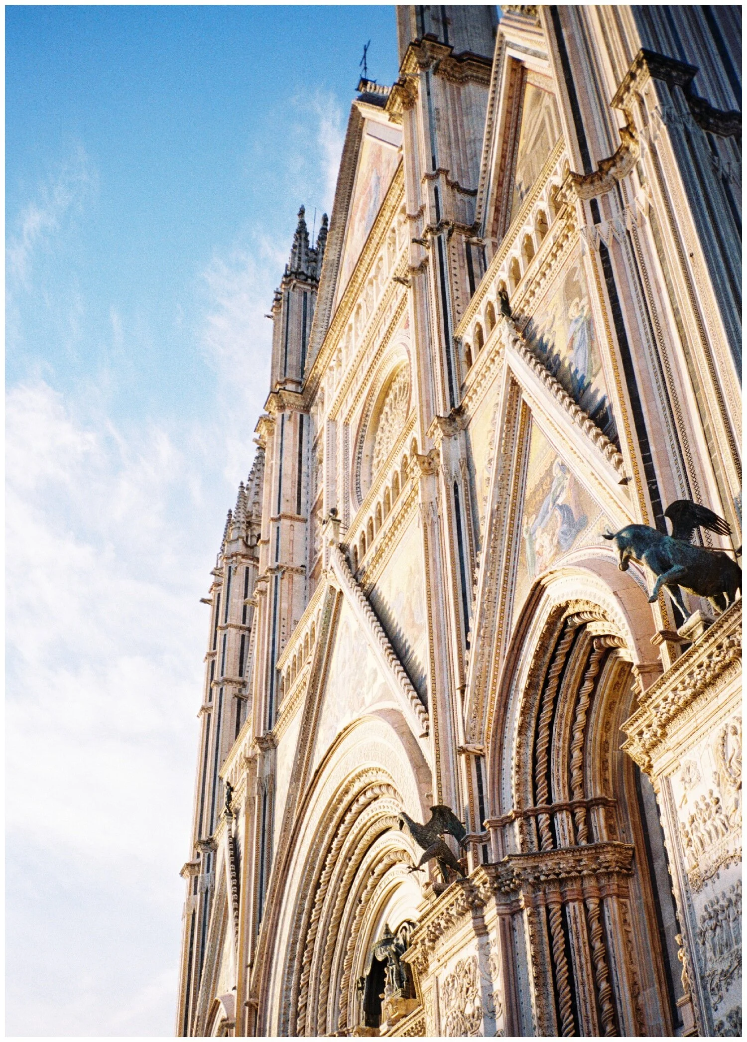 On my solo trip to Italy in 2018 I decided to branch out beyond some of the places I had seen before on previous adventures and while researching spots along the Rome to Florence train route I discovered Orvieto. An 800 year old town (!!!) perched on top of a rock formation in the middle of a gorgeous valley. Hundreds of years ago the sheer cliffs and fortress walls kept the town safe. In more recent years, the residents have slowly resettled their homes in the valley below the original town of Orvieto, but the charm and history of its origins remain. My AirBNB was two blocks from the 14th century duomo, I watched the sunsets from the edge of the bluffs overlooking an incredible view, and I noticed that it seemed all the locals knew each other – so much waving and friendly greeting in the streets. Businesses closed by 6 or 7pm with restaurants reopening after that for long, pleasant dinners on the quiet streets. This town shot to the top of the list of my favorite places I’ve ever been and I cannot wait to go back. My favorite film shots from my two night stay in Orvieto are below.