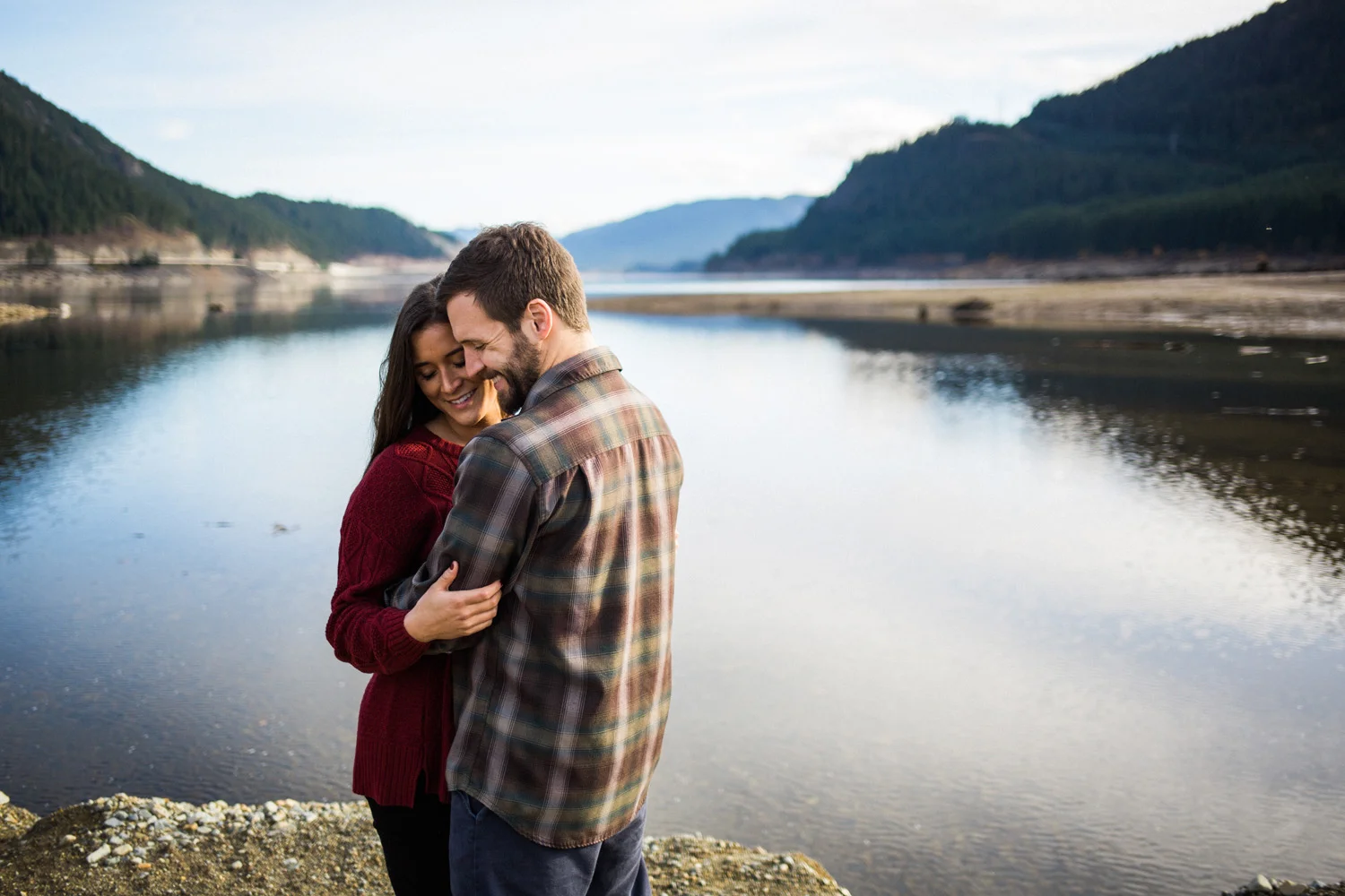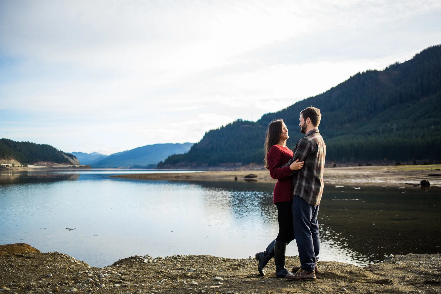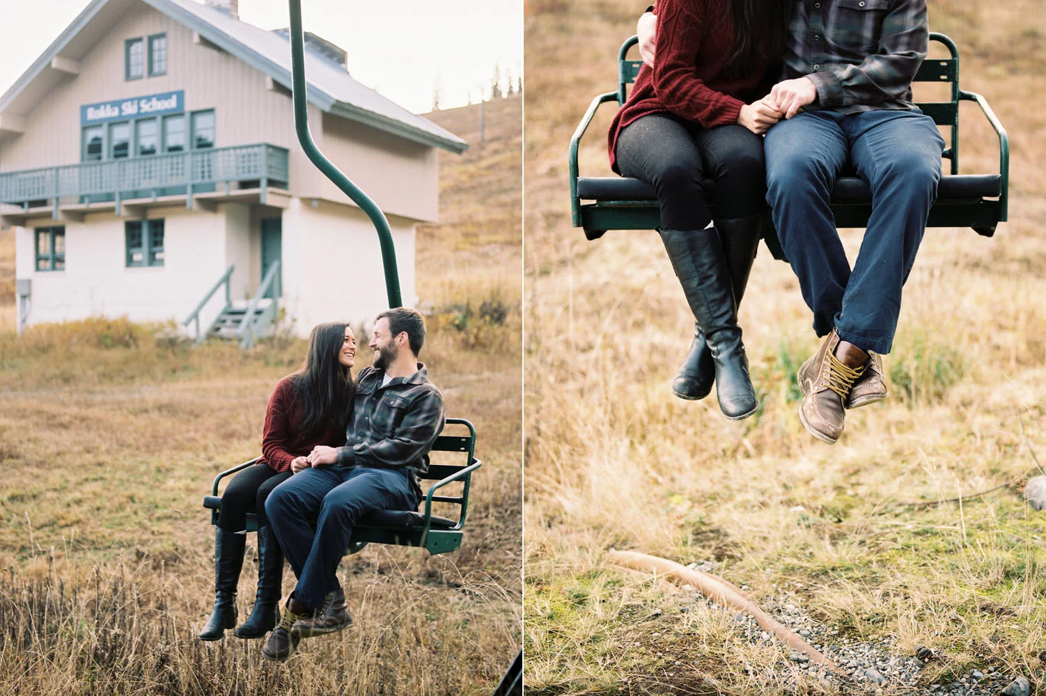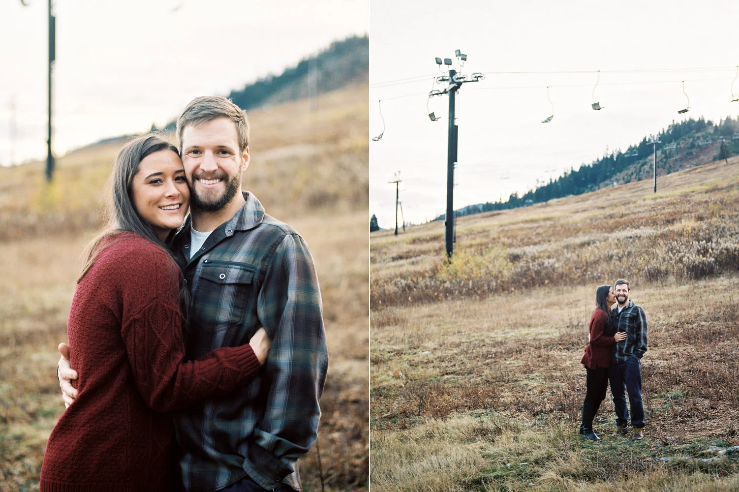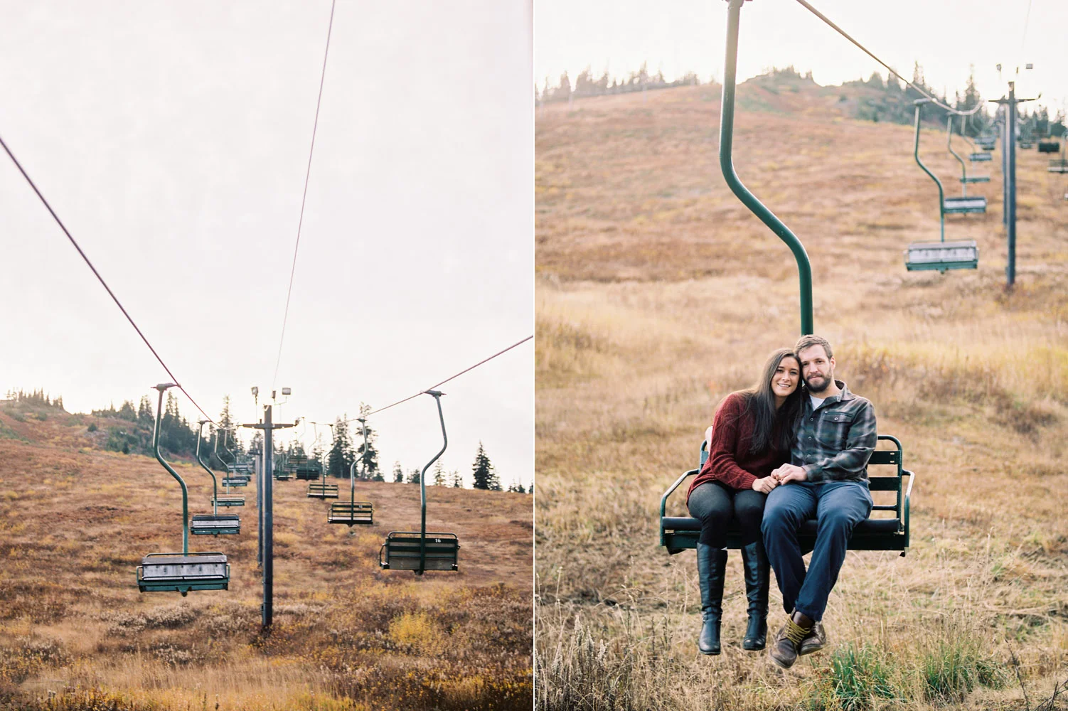 We ventured to Snoqualmie Pass last fall for an engagement session that would allow us to be in the forest and near the water all at the same time. We climbed on a chair lift for some cute portraits – which is perfect since Sierra & Jordan both love the outdoors – and enjoyed some beautiful fall weather near the water. We watched the evening light get low as the sun fell behind the ridge at the pass and enjoyed the fact that we were alone in a peaceful and beautiful setting. This was my kind of engagement session.