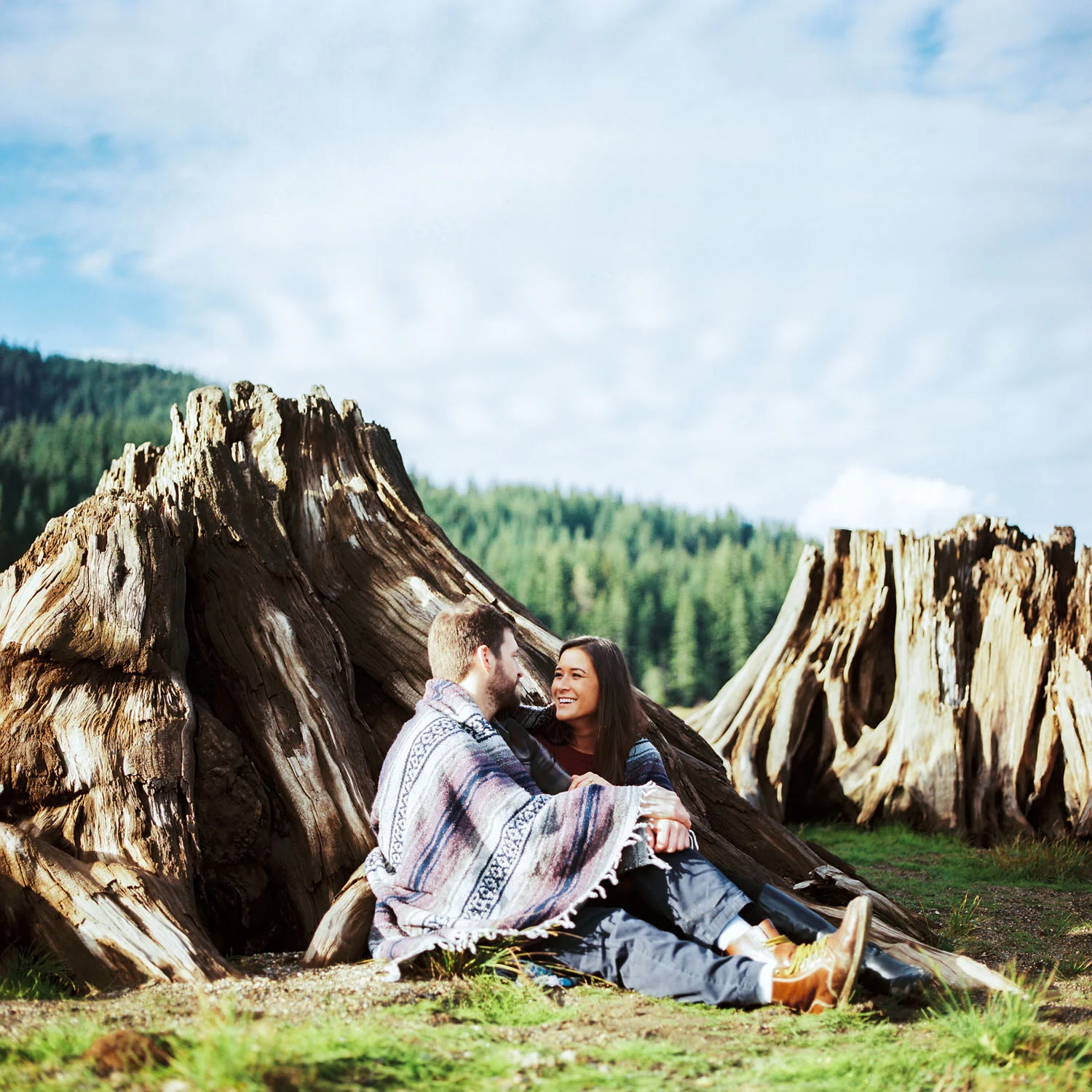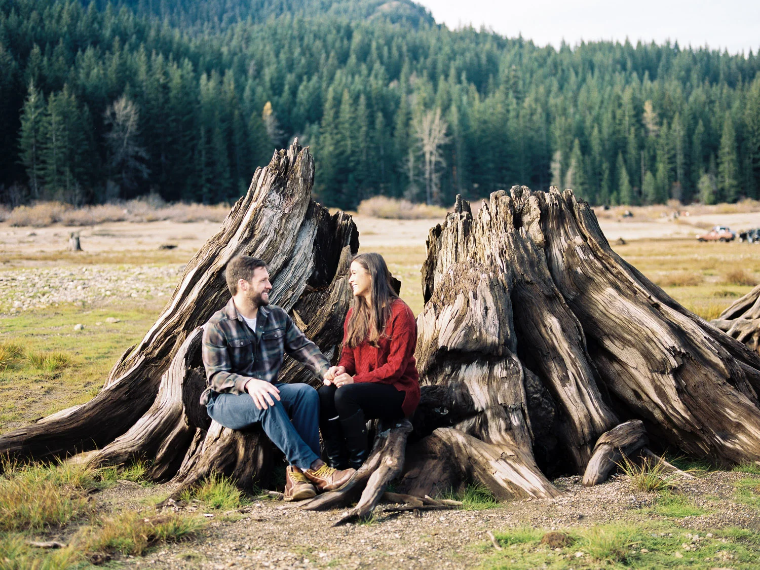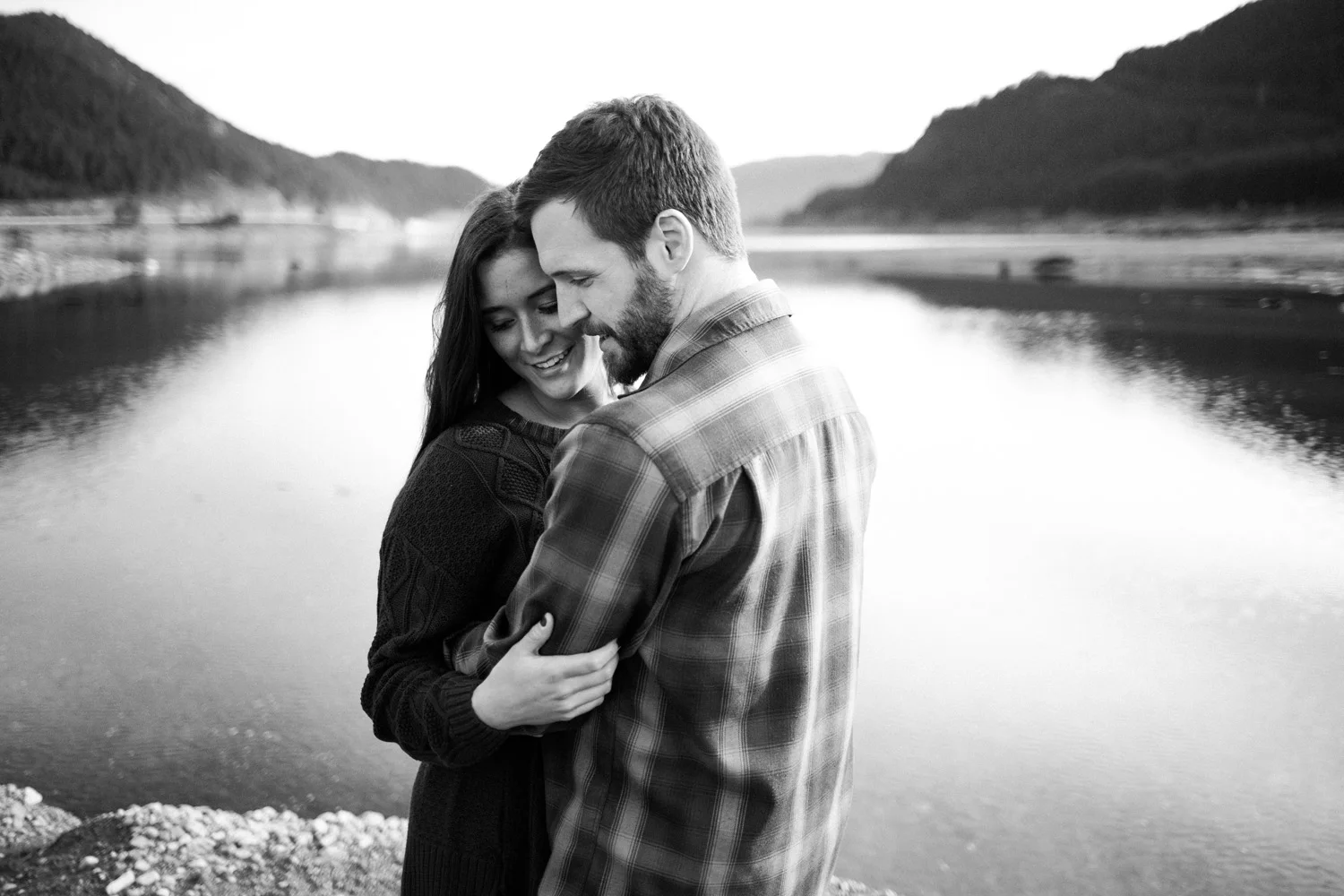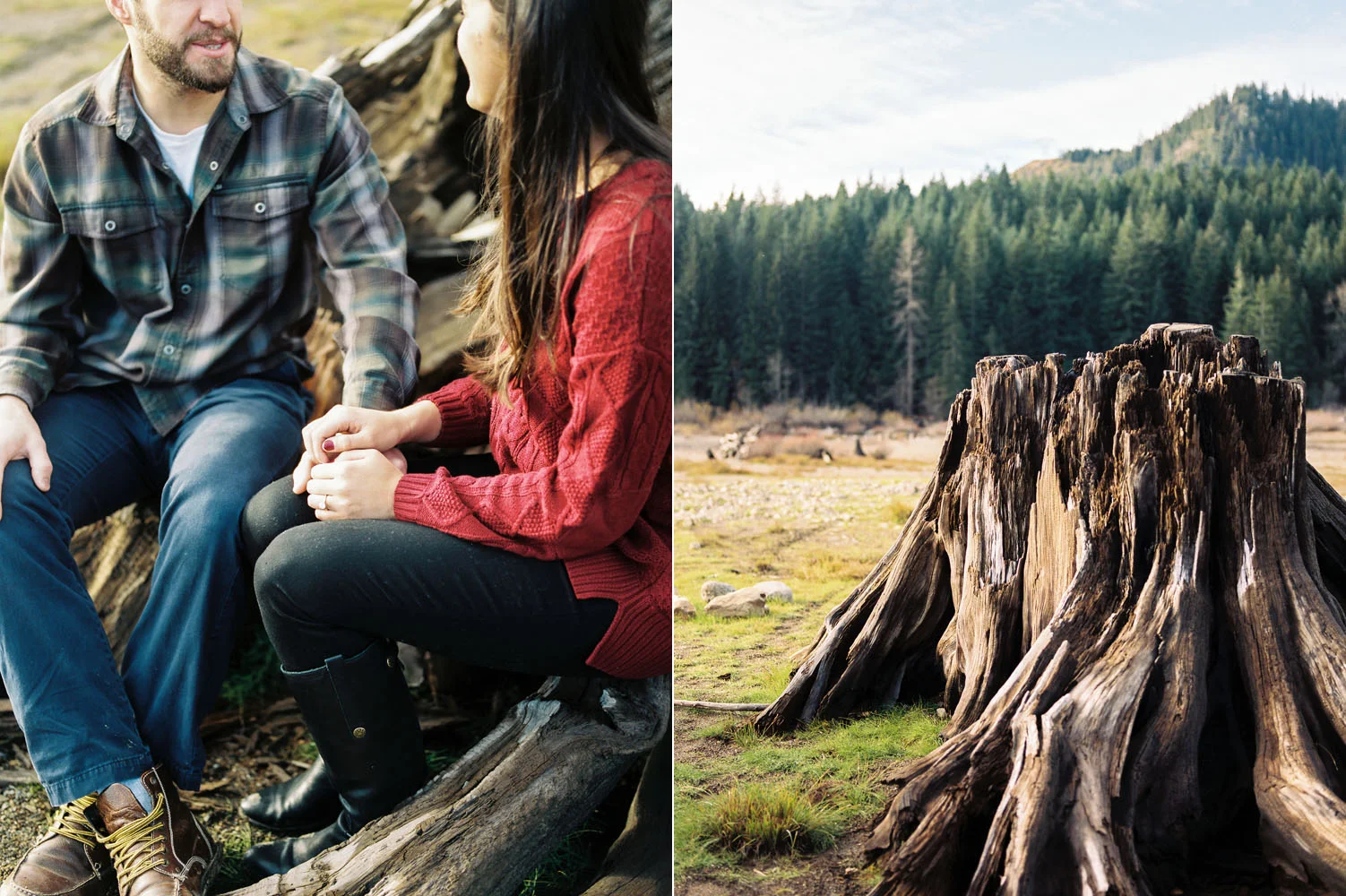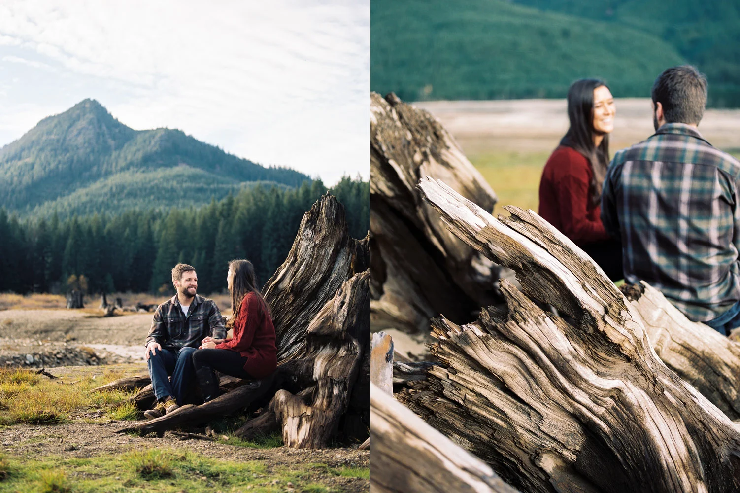 We ventured to Snoqualmie Pass last fall for an engagement session that would allow us to be in the forest and near the water all at the same time. We climbed on a chair lift for some cute portraits – which is perfect since Sierra & Jordan both love the outdoors – and enjoyed some beautiful fall weather near the water. We watched the evening light get low as the sun fell behind the ridge at the pass and enjoyed the fact that we were alone in a peaceful and beautiful setting. This was my kind of engagement session.